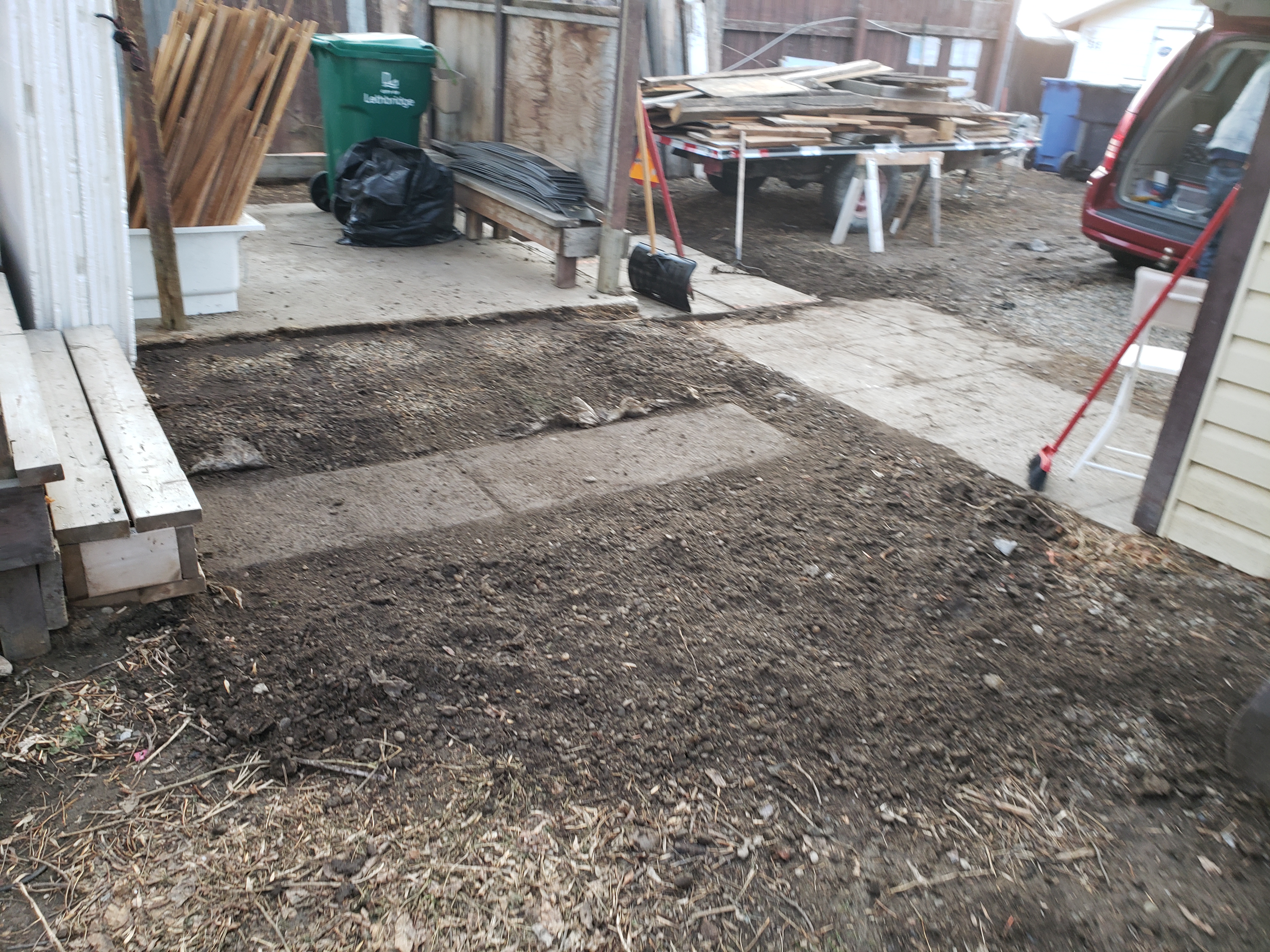 5/13/2024 1:19 PM 6236458 520 12C St N Lethbridge AB prop 20240513_141942 earth removed for main walkway.jpg