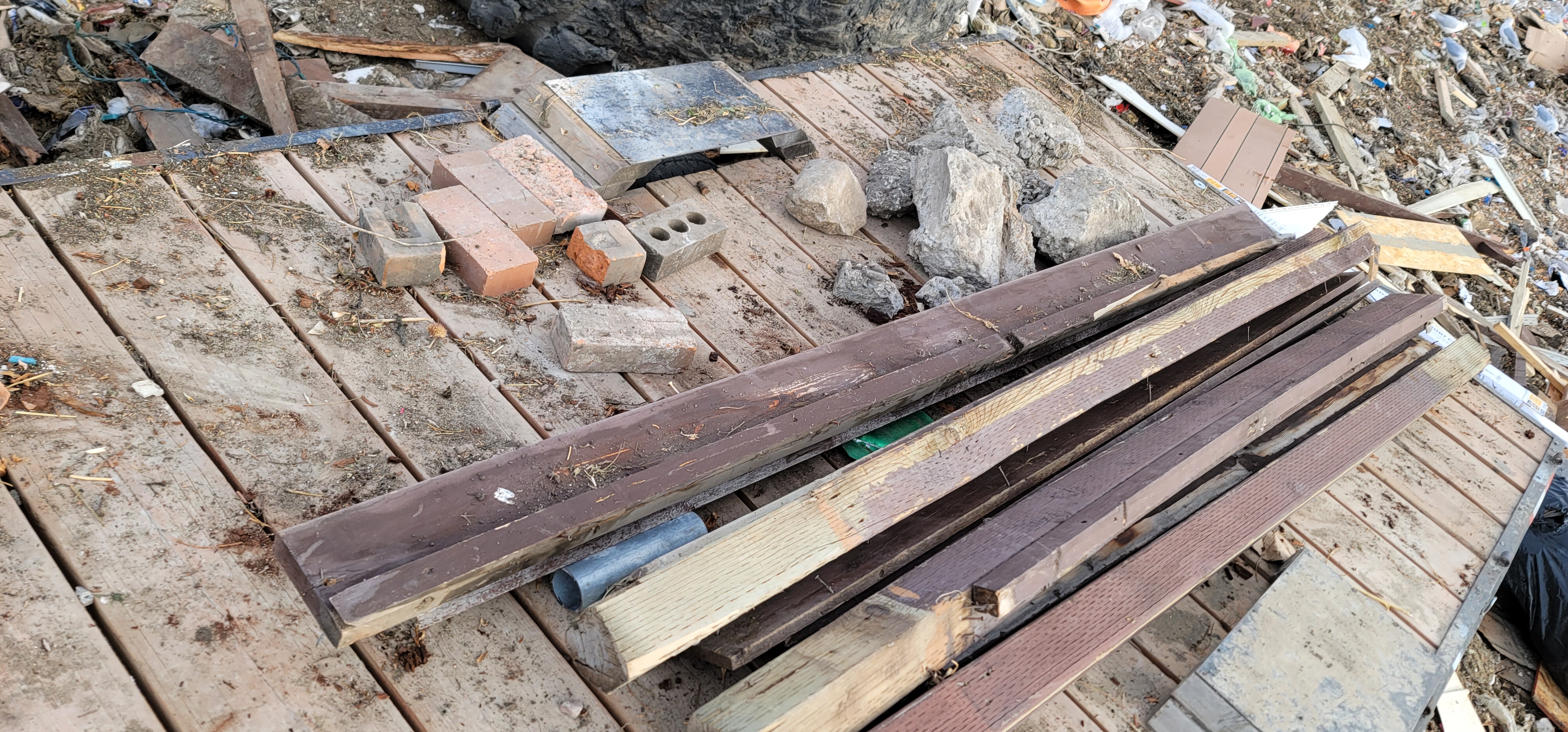 11/3/2025 3:04 PM 3105756 520 12C St N Lethbridge AB prop 20251103_150404 wood salvaged from gazebo.jpg