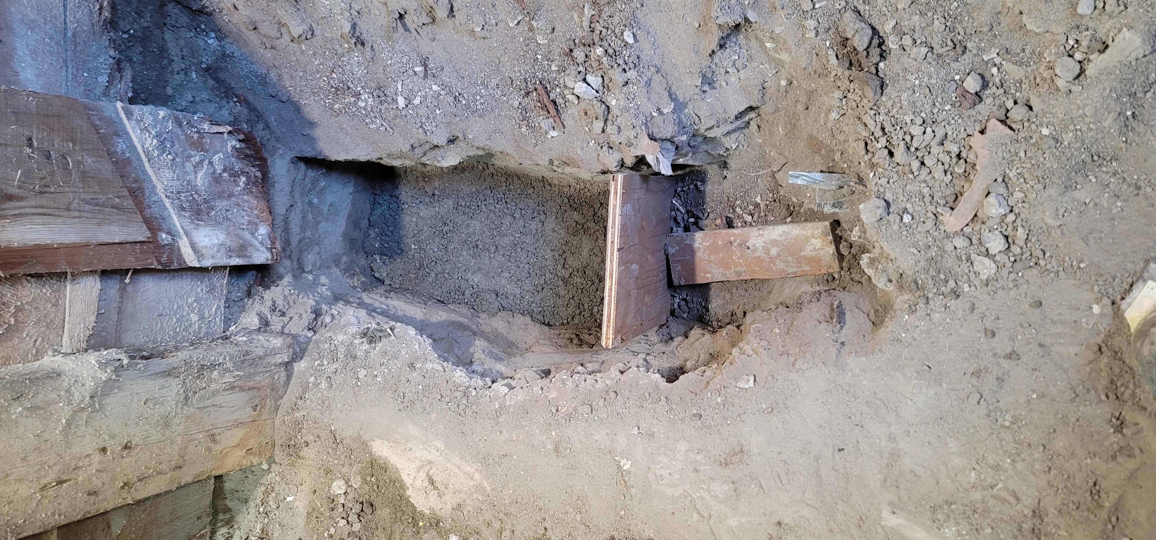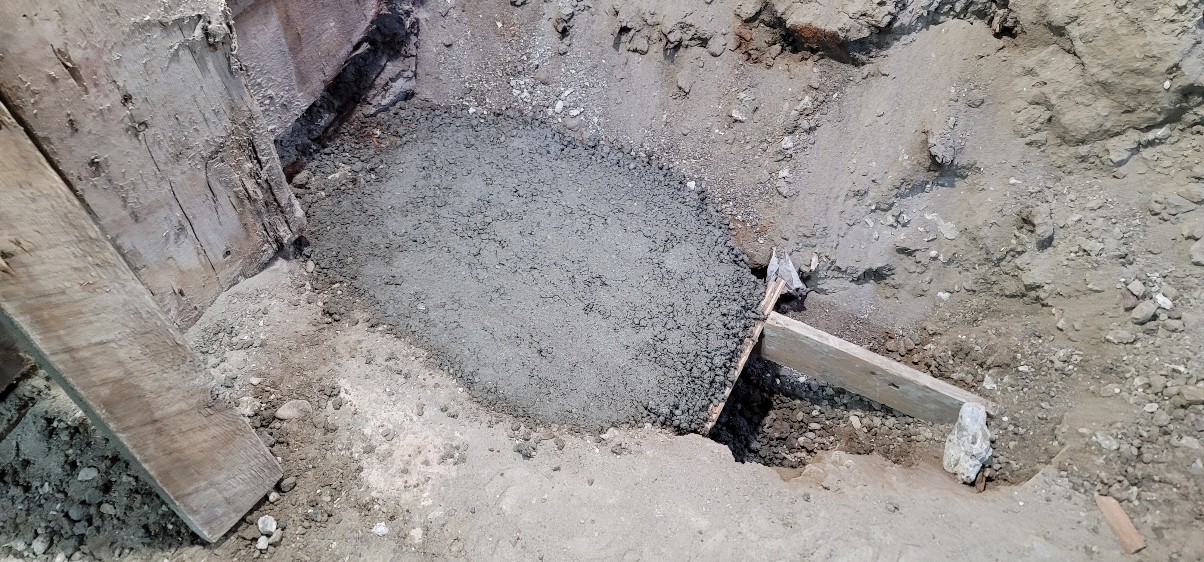 10/3/2025 1:46 PM 3070796 1403 3 Ave N Lethbridge AB prop 20251003_144608 filling footing hole with cement.jpg