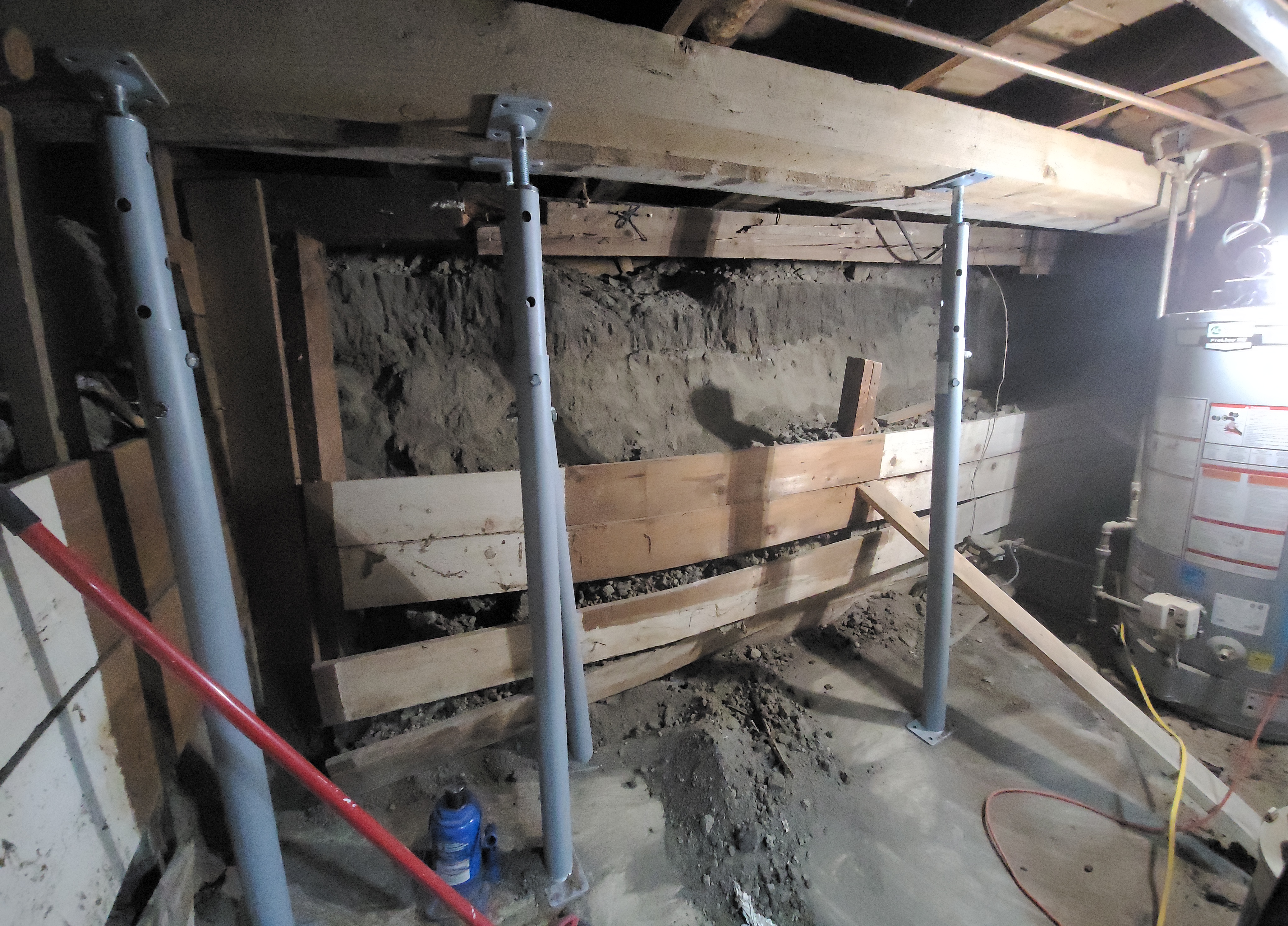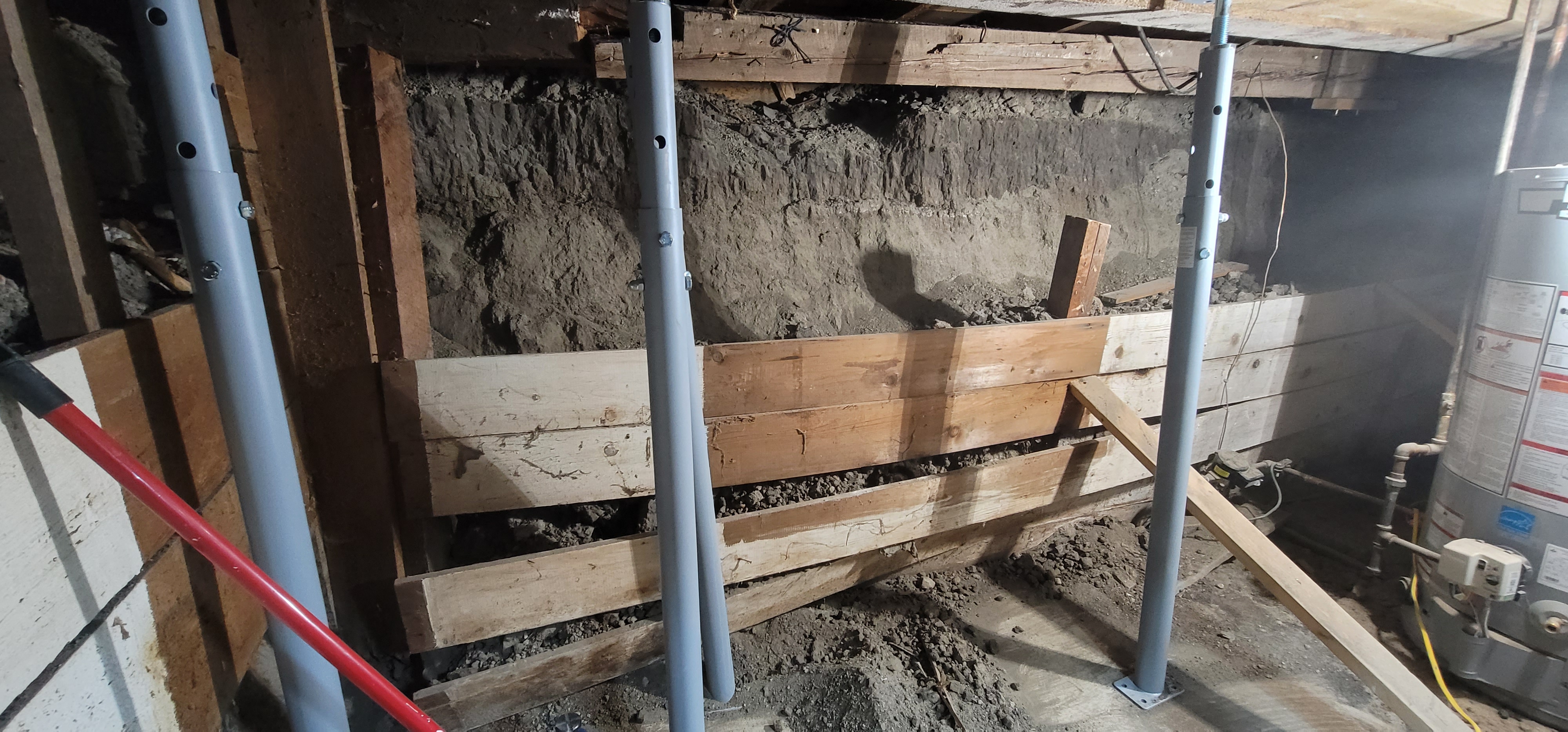10/27/2025 5:42 PM 2935693 1403 3 Ave N Lethbridge AB prop 20251027_184252 teleposts holding up retaining wall.jpg