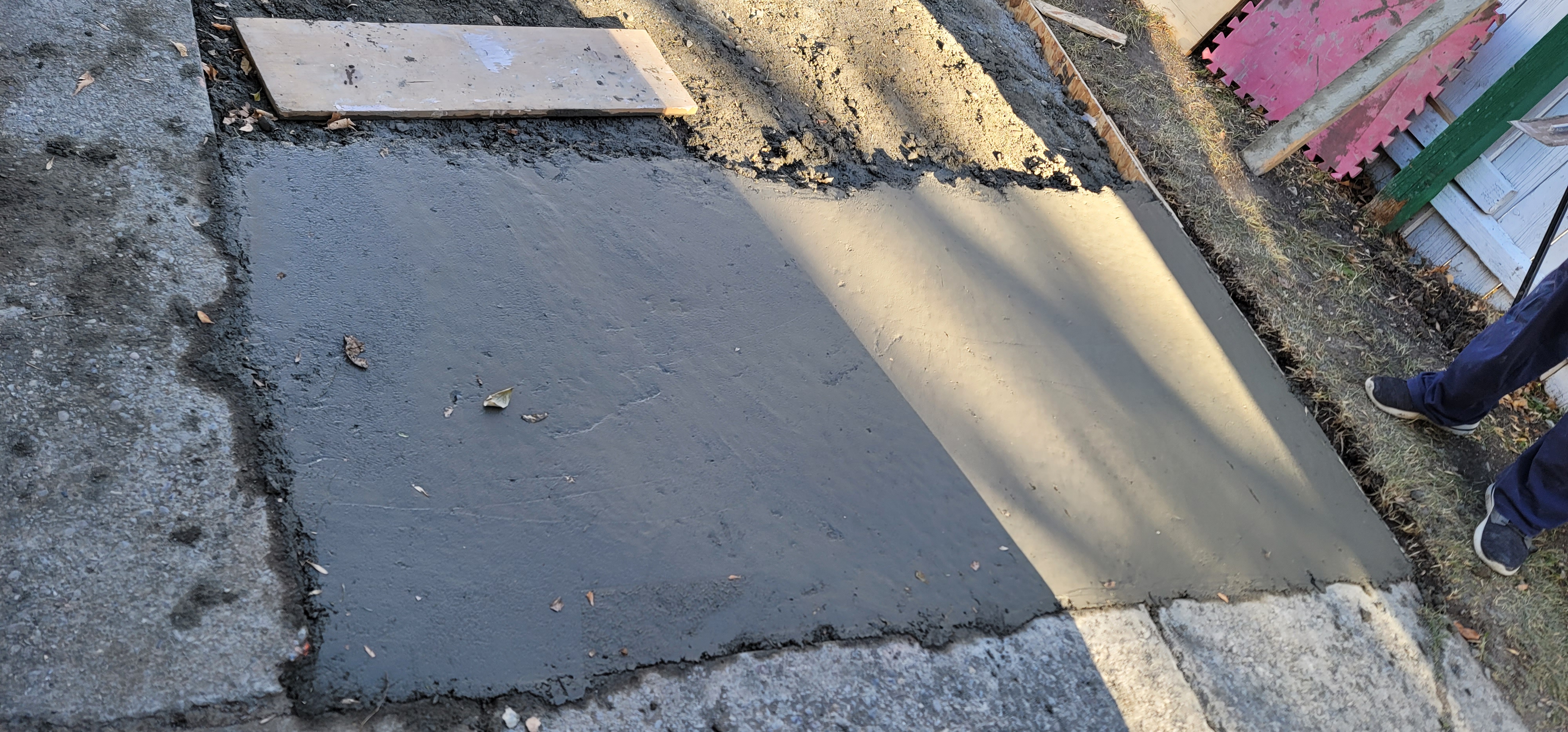 11/6/2025 9:23 AM 3521493 1403 3 Ave N Lethbridge AB prop 20251106_092315 side patio concrete base layer complete.jpg