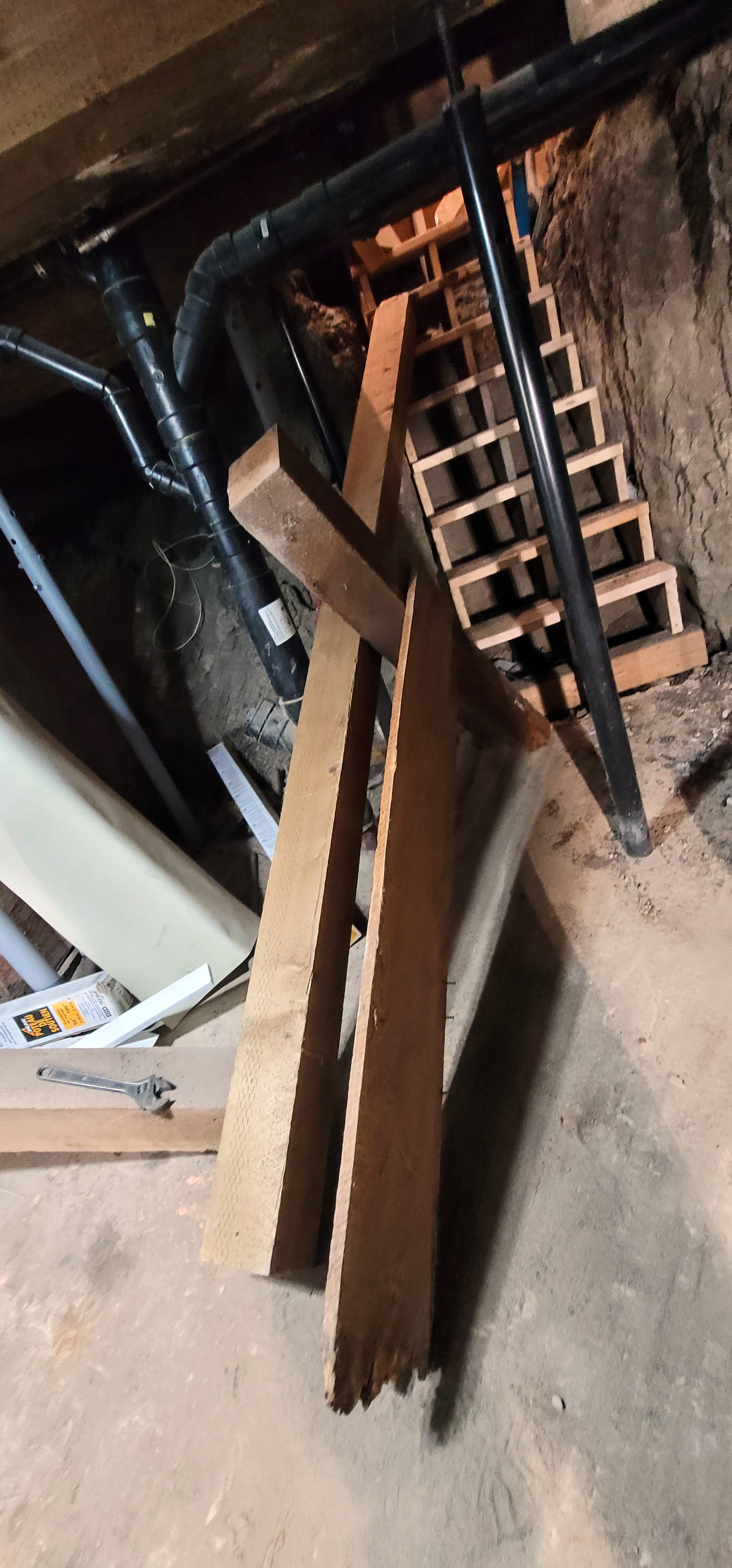 11/7/2025 6:00 PM 2531207 1403 3 Ave N Lethbridge AB prop 20251107_180037 basement south beams and teleposts, old beam and corner removed.jpg