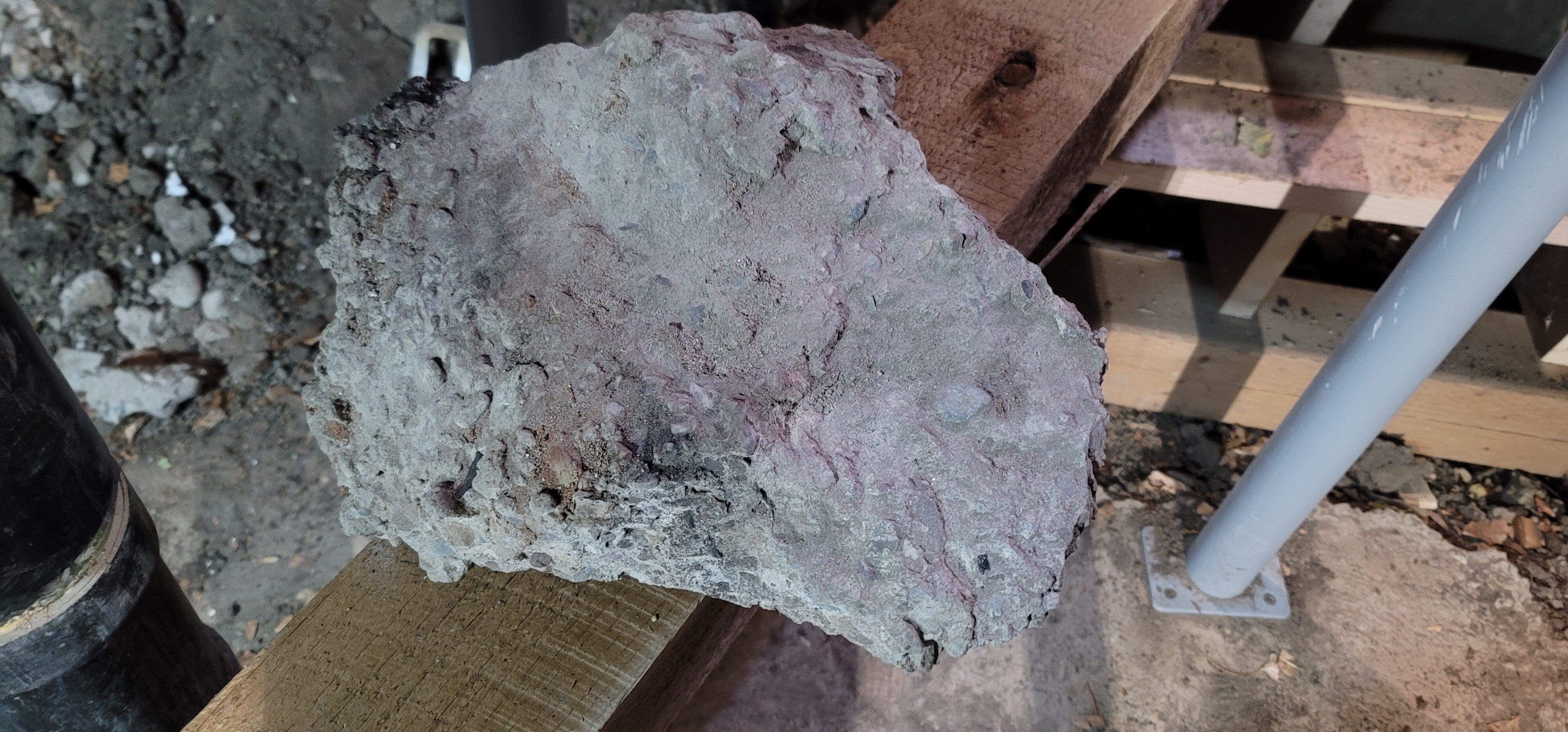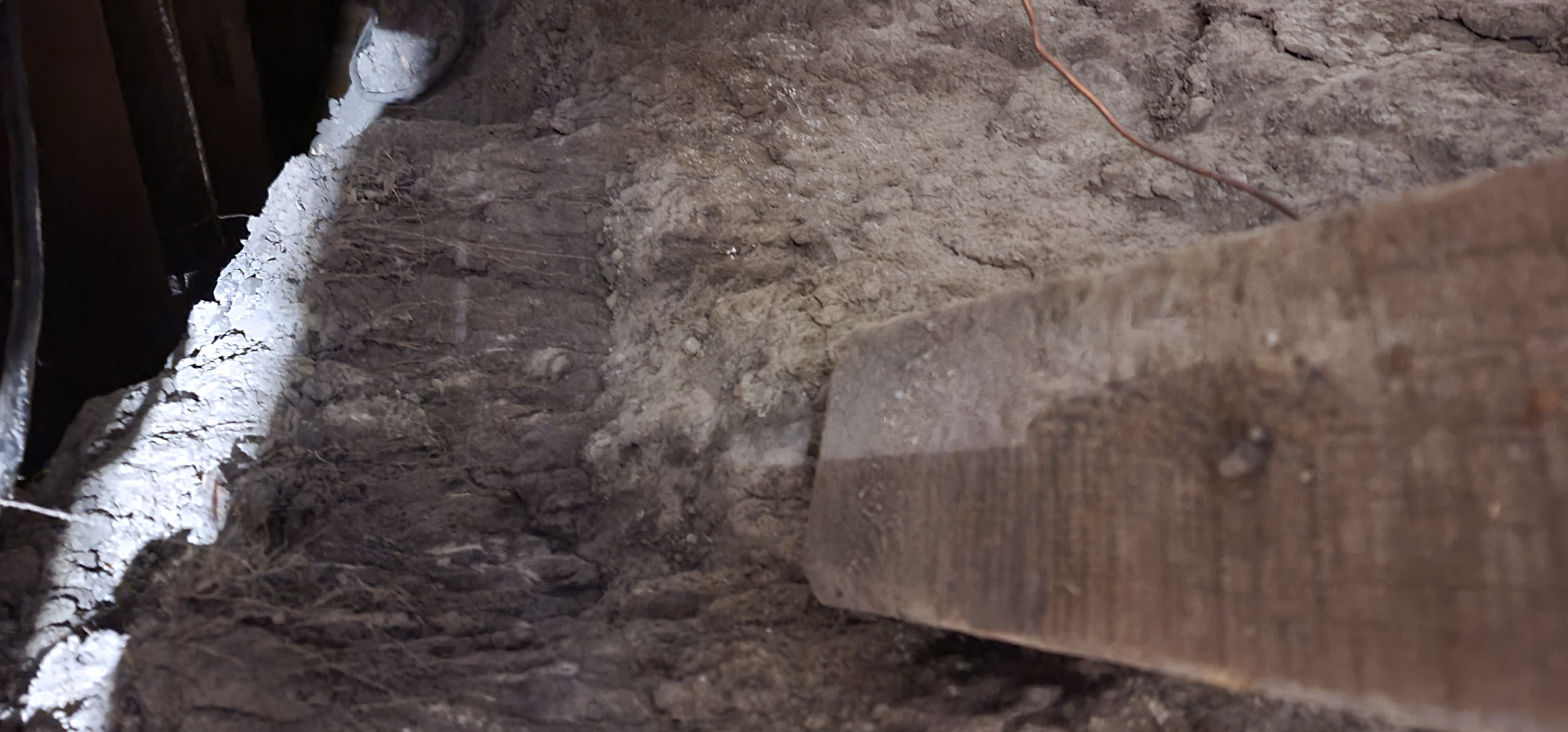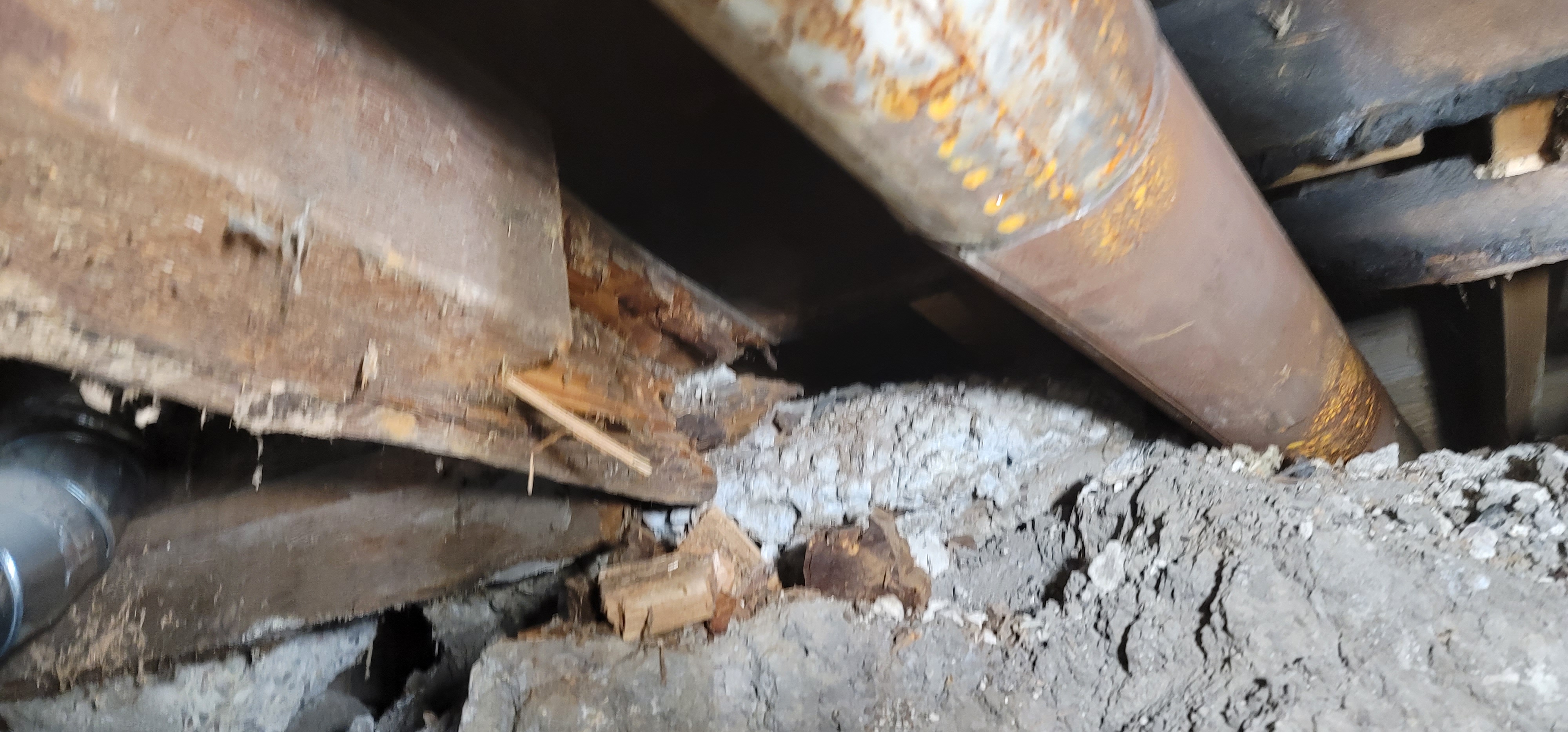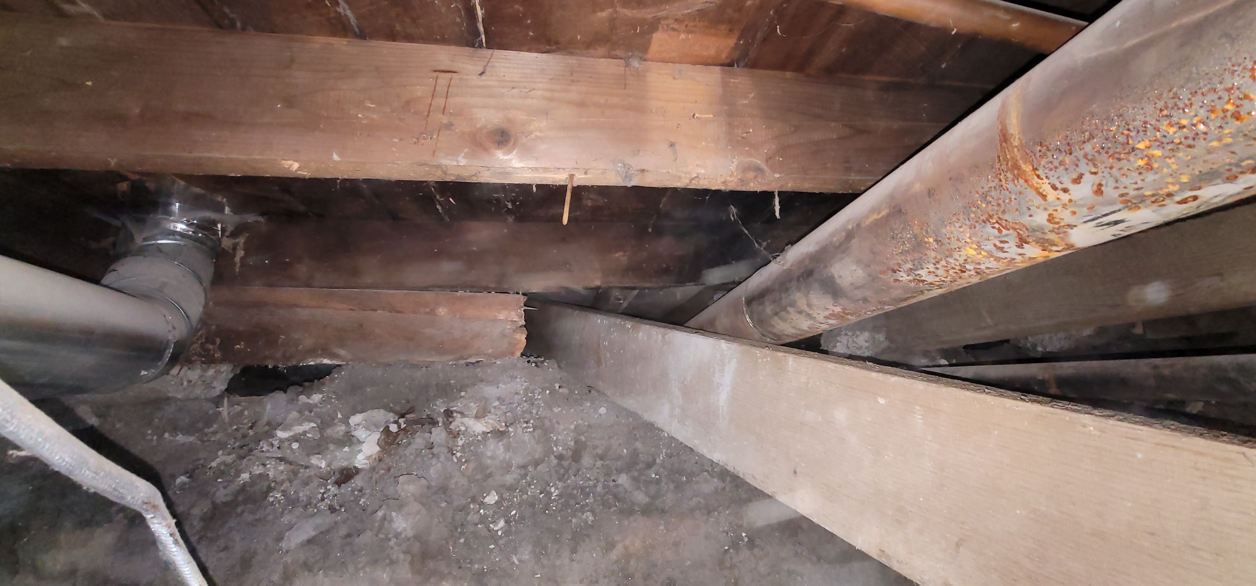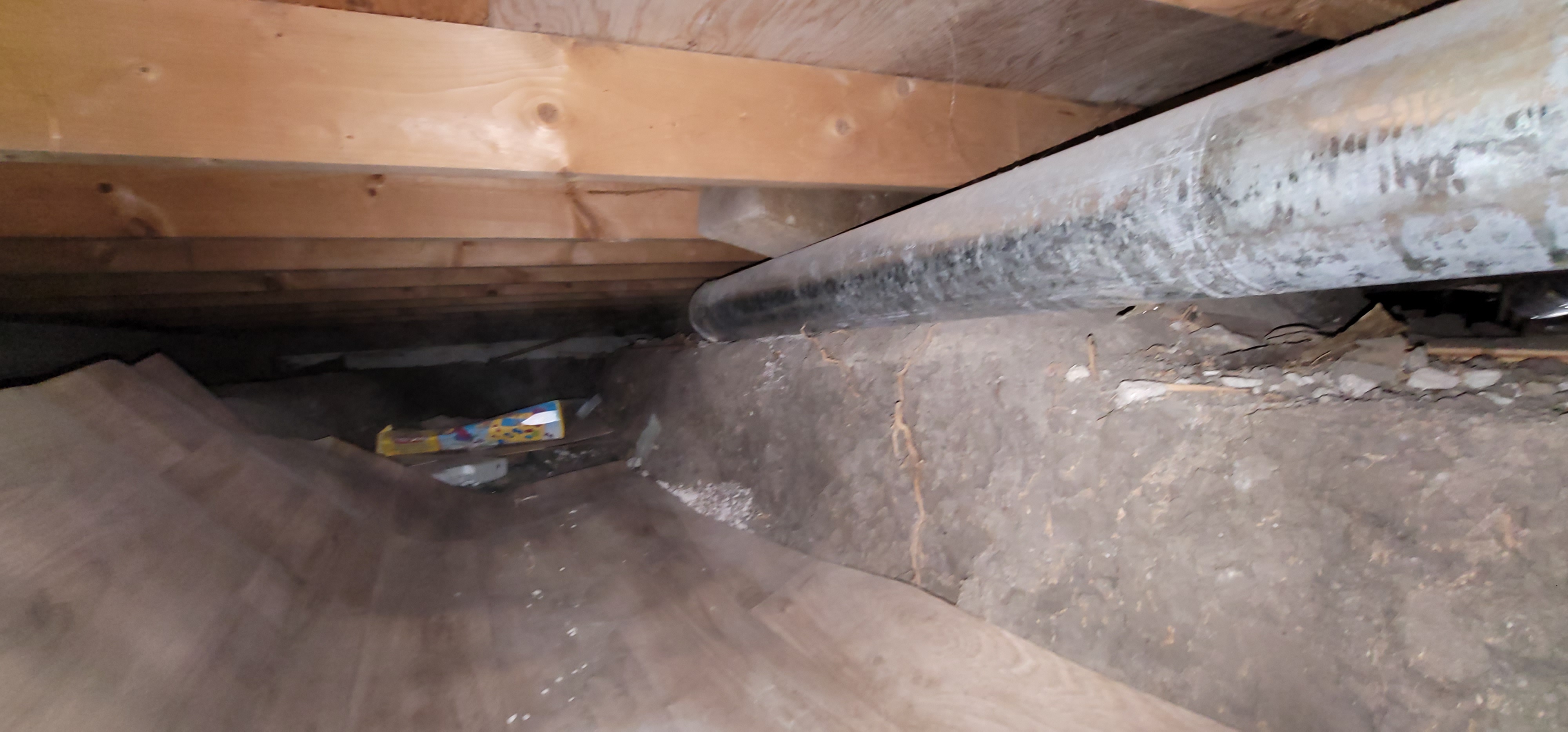 11/17/2025 4:03 PM 1978063 1403 3 Ave N Lethbridge AB prop 20251117_160347 Floyd with beam resting on 1x8 plank.jpg