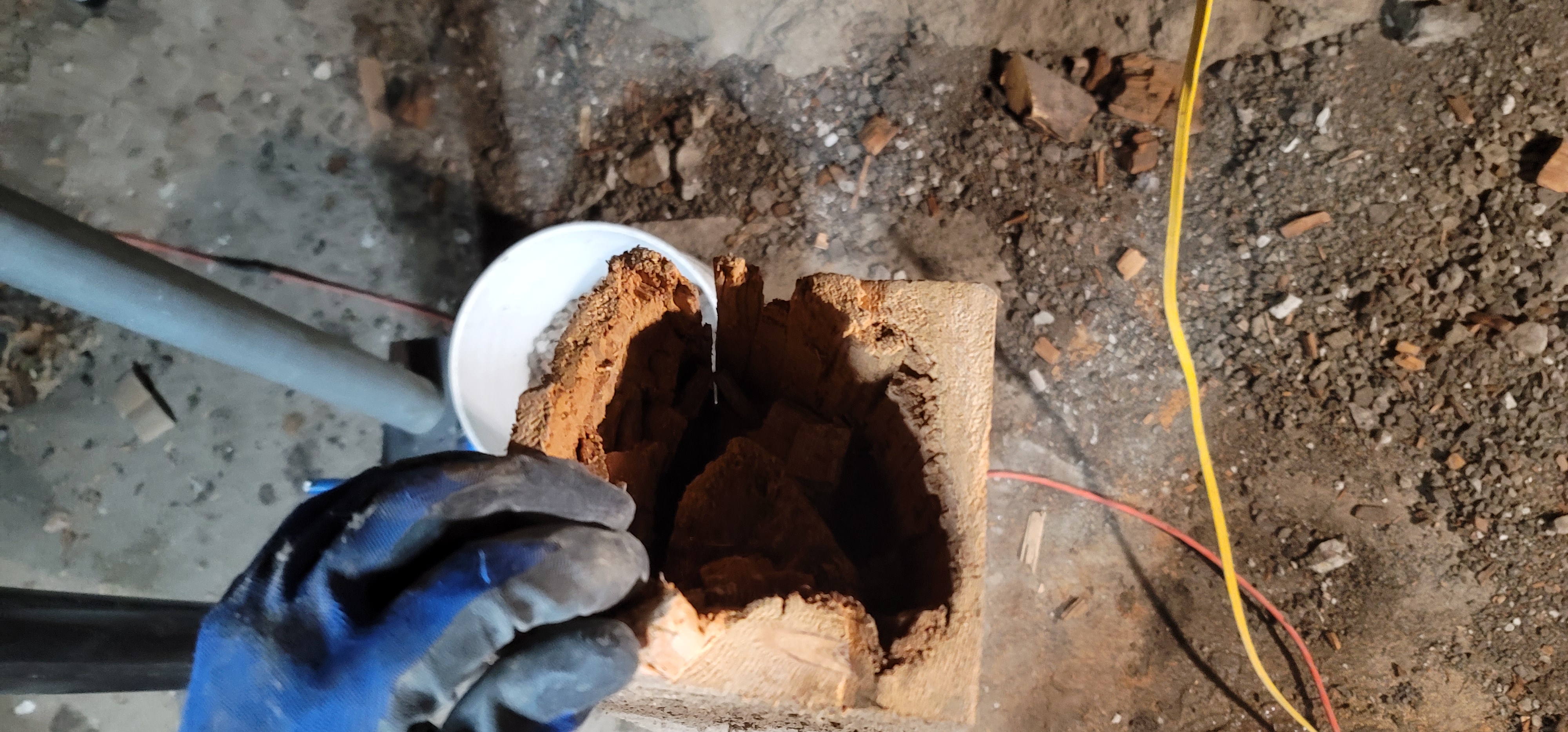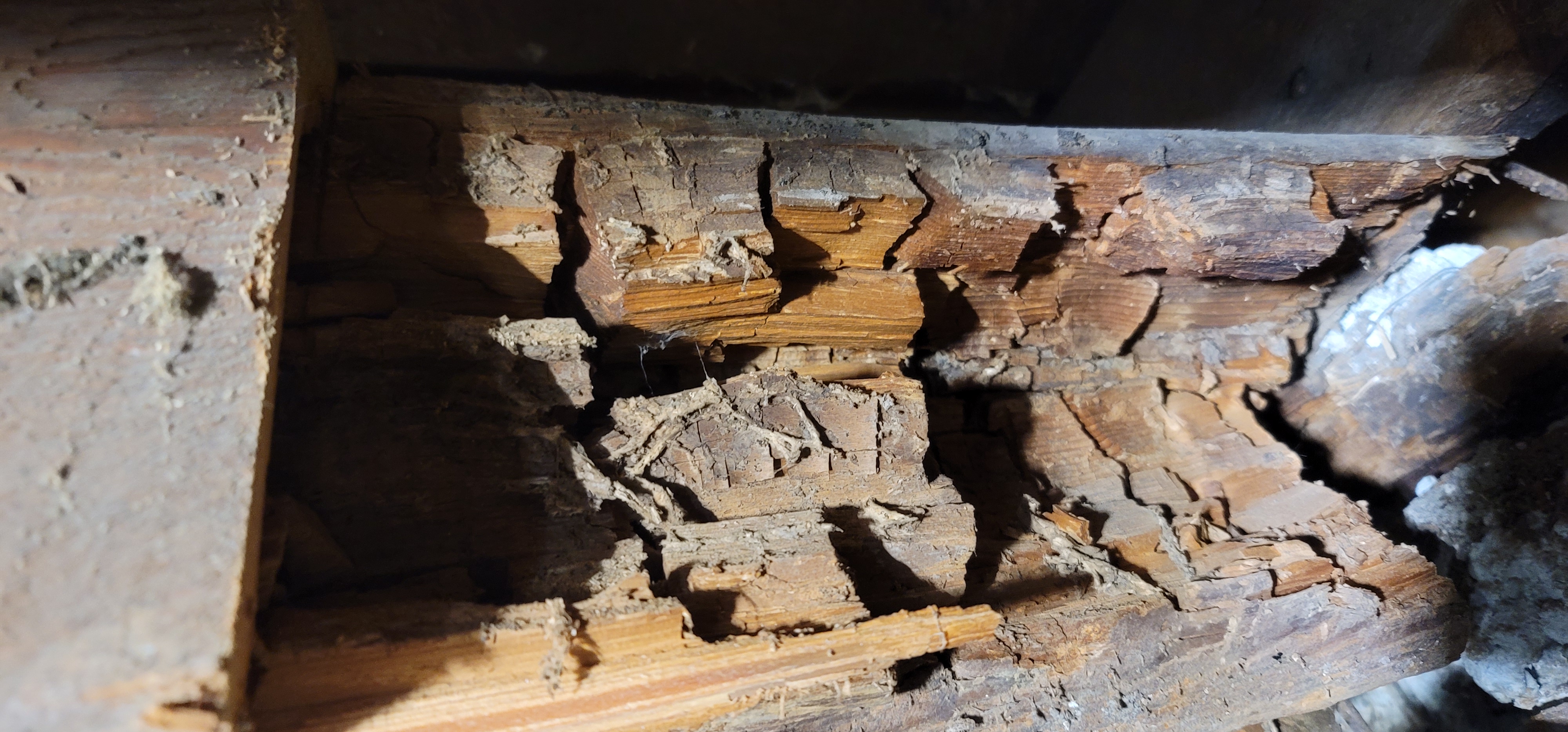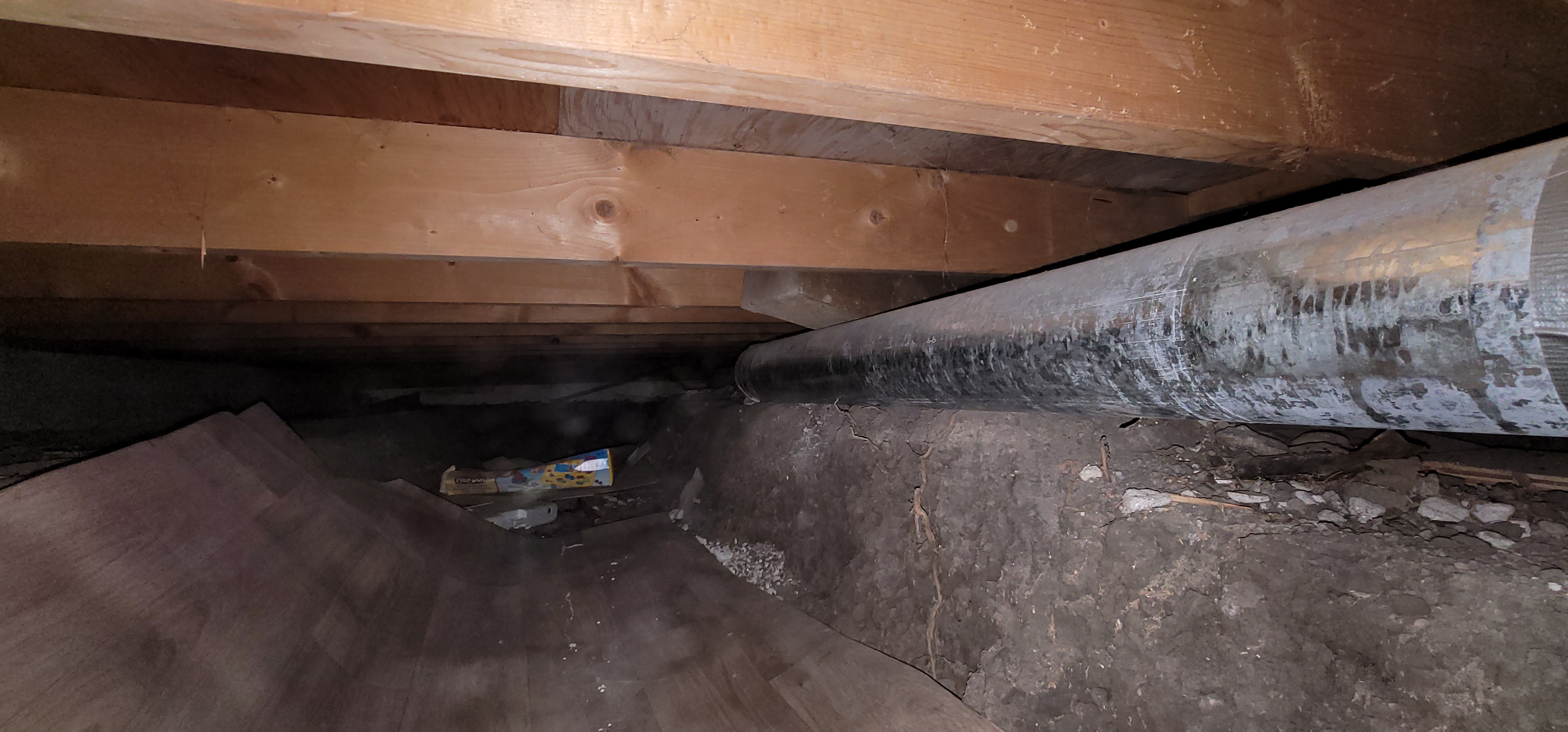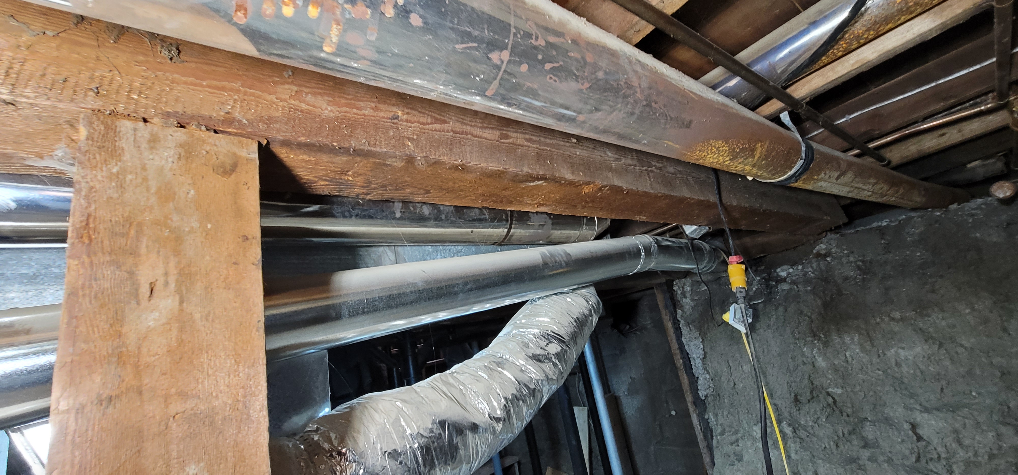 11/17/2025 4:03 PM 1978063 1403 3 Ave N Lethbridge AB prop 20251117_160347 Floyd with beam resting on 1x8 plank.jpg