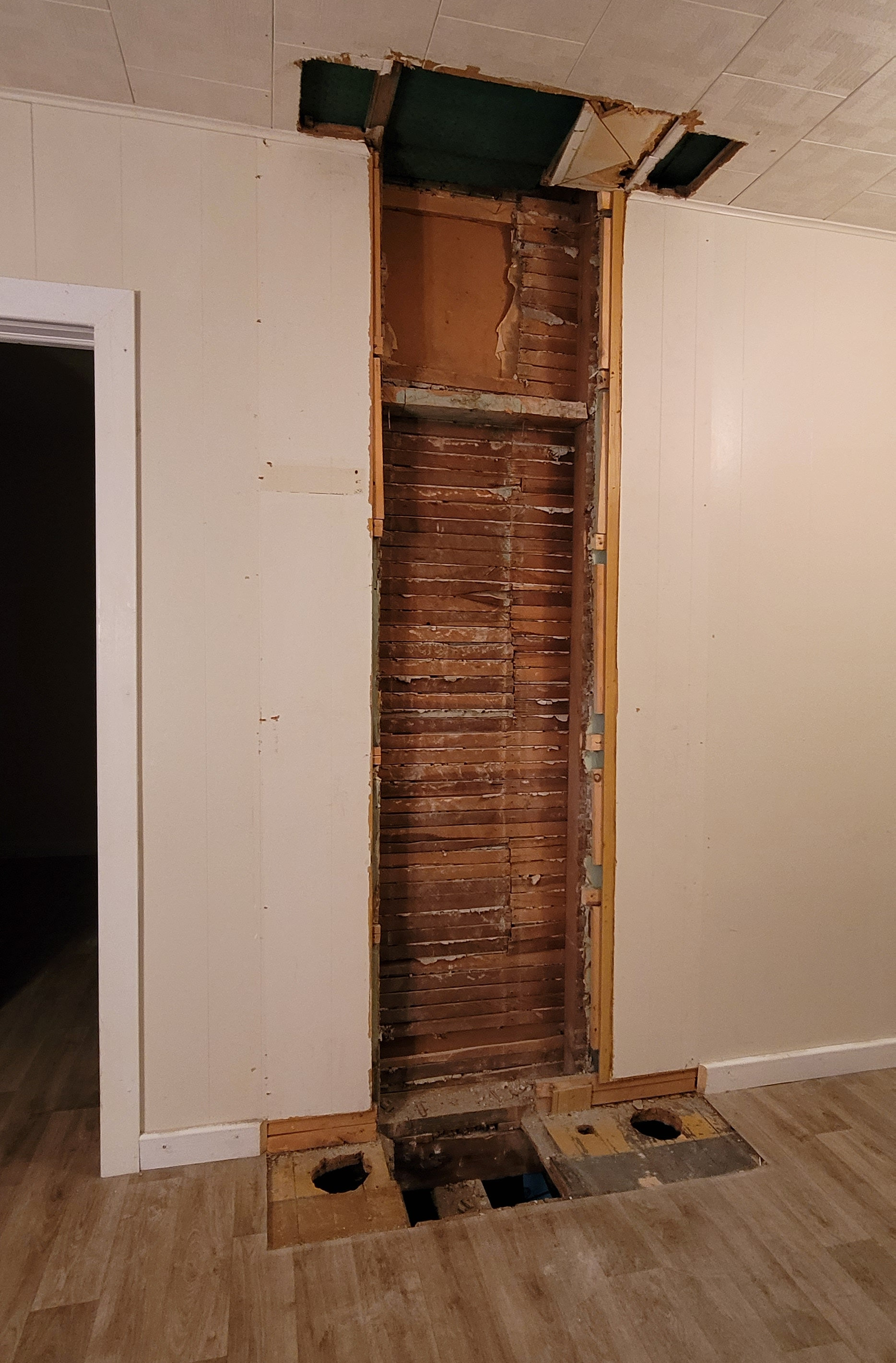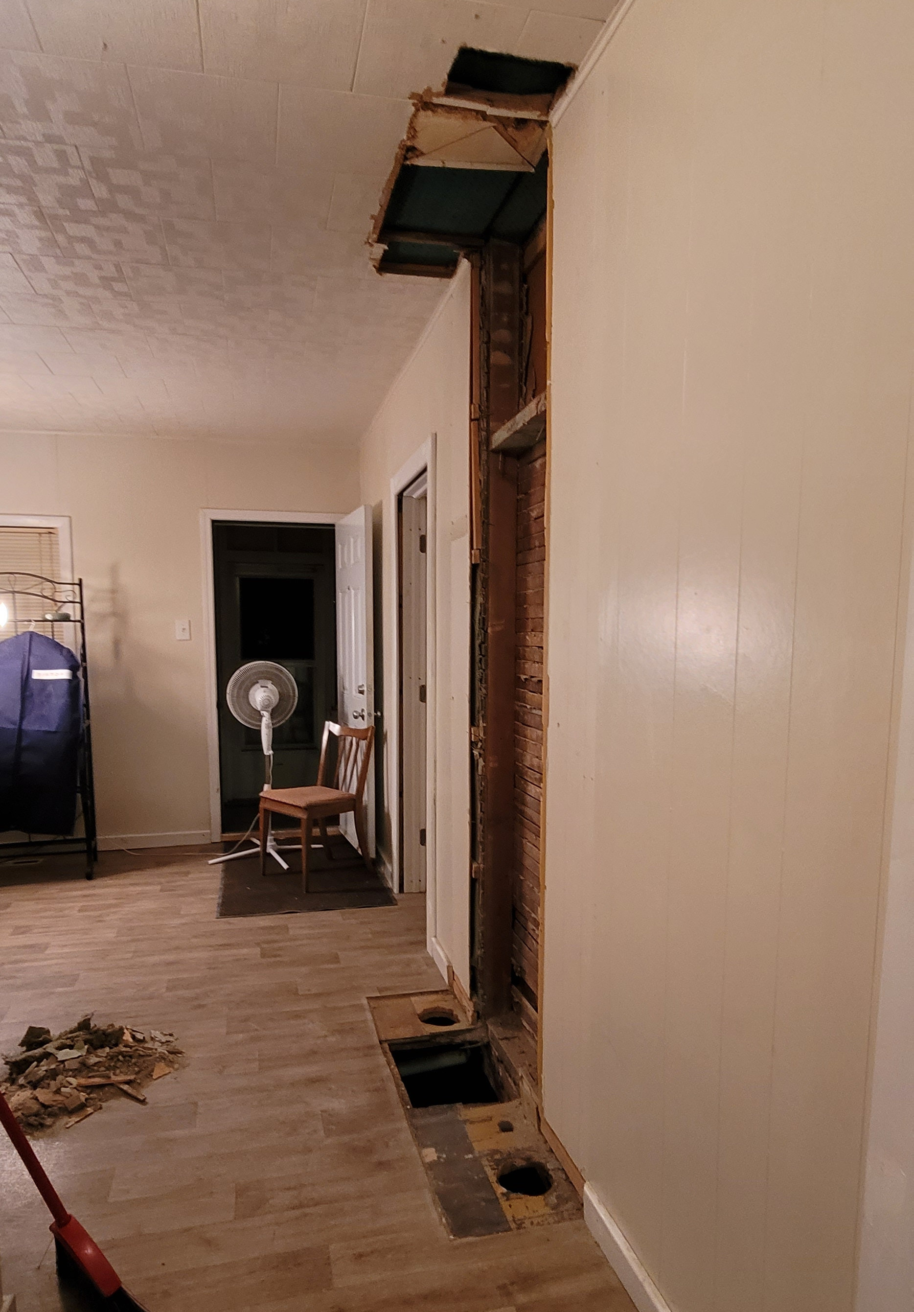 11/23/2025 9:48 AM 841163 1403 3 Ave N Lethbridge AB main 20251122_175623 chimney hole in floor, ceiling.jpg