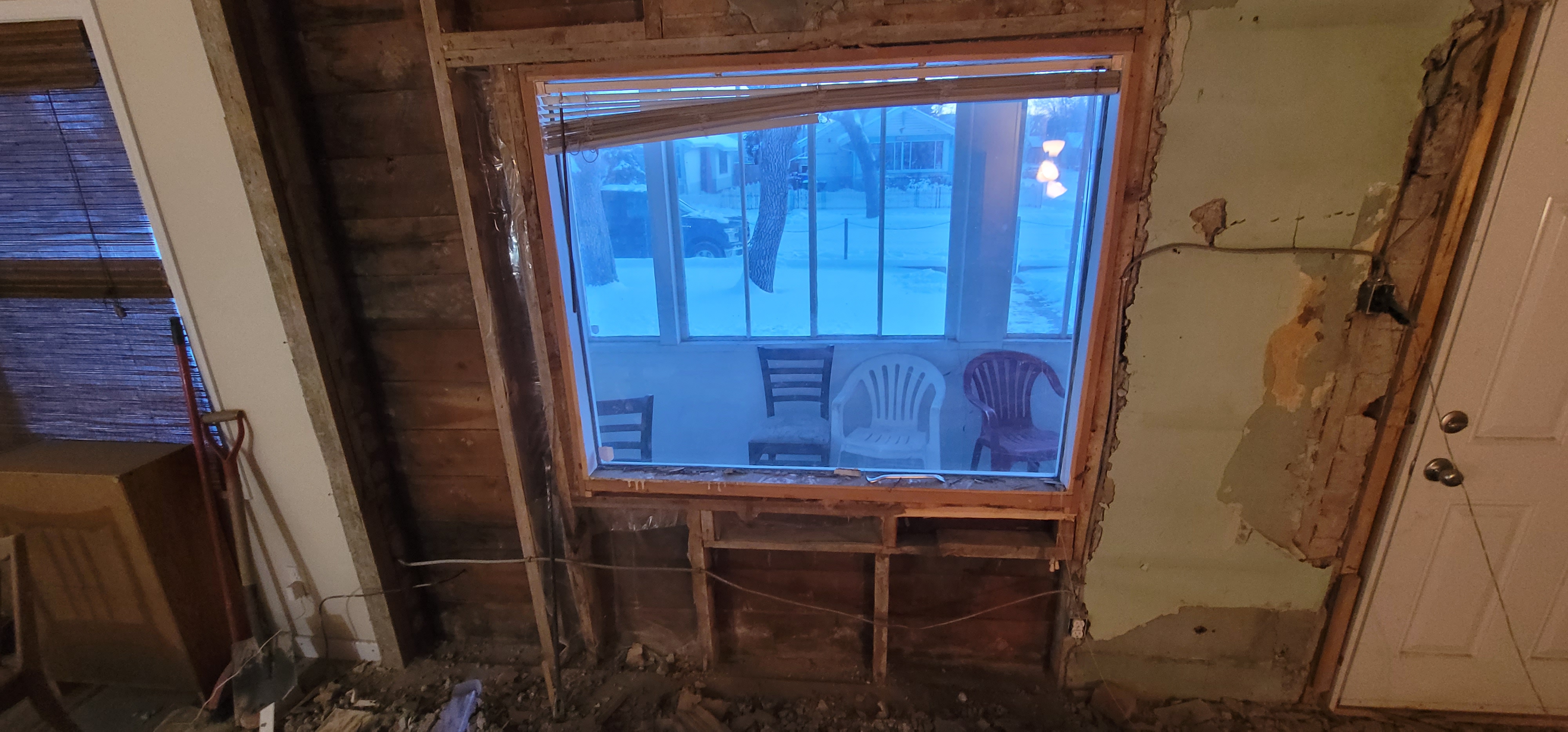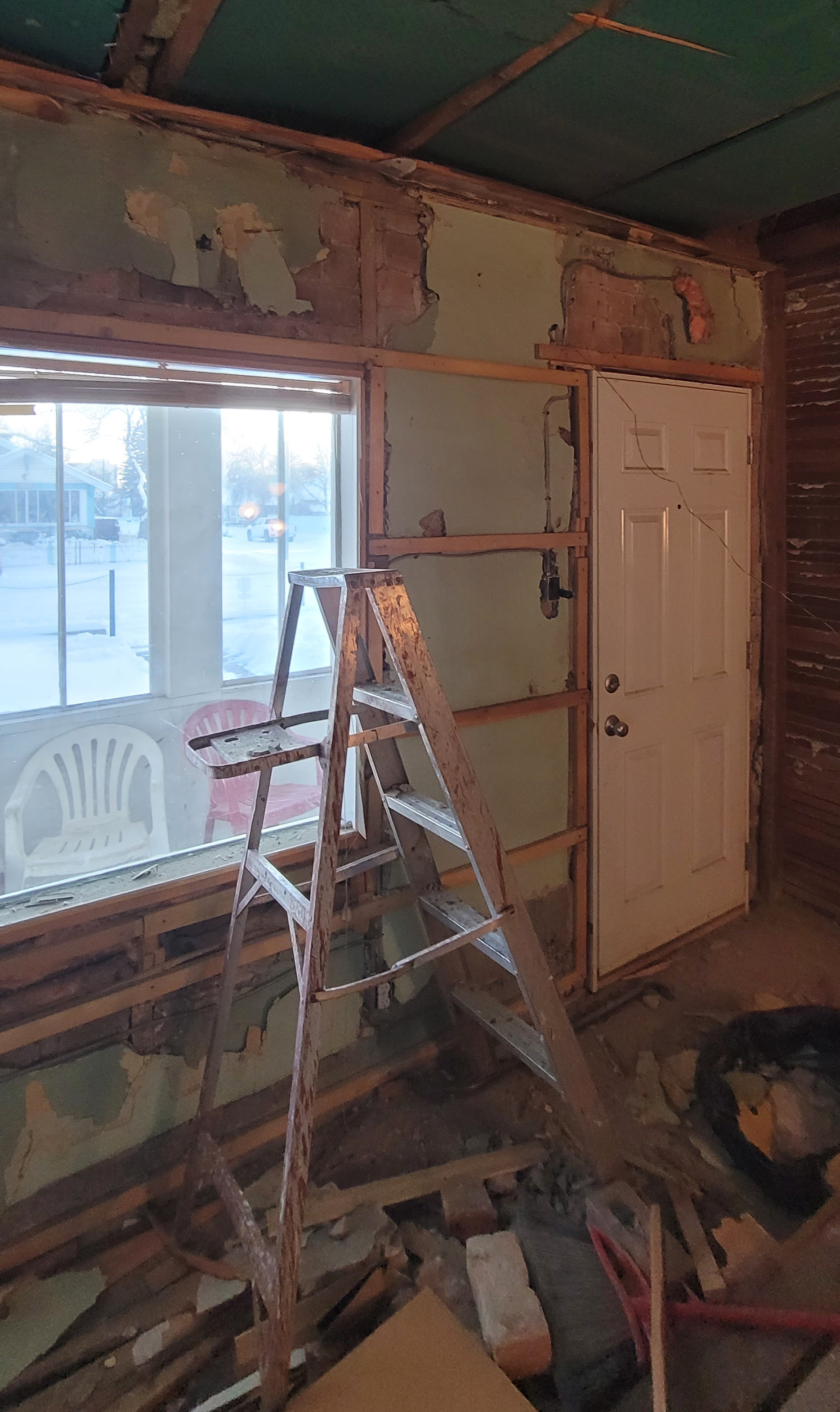 11/29/2025 4:52 PM 1959324 1403 3 Ave N Lethbridge AB main 20251129_165226 living room bricks removed from south wall.jpg