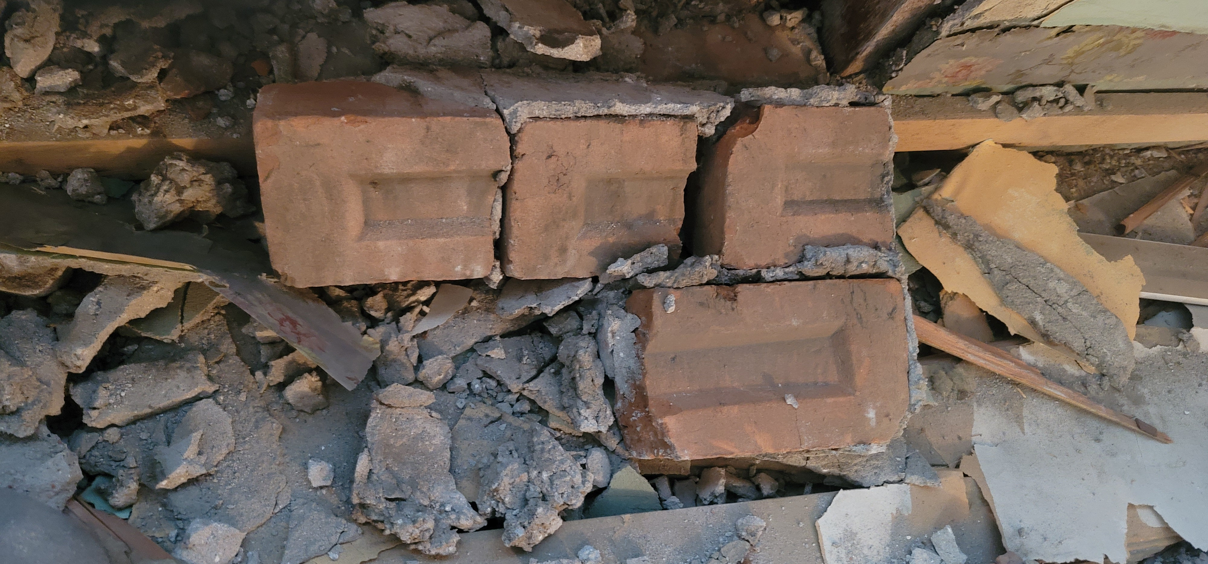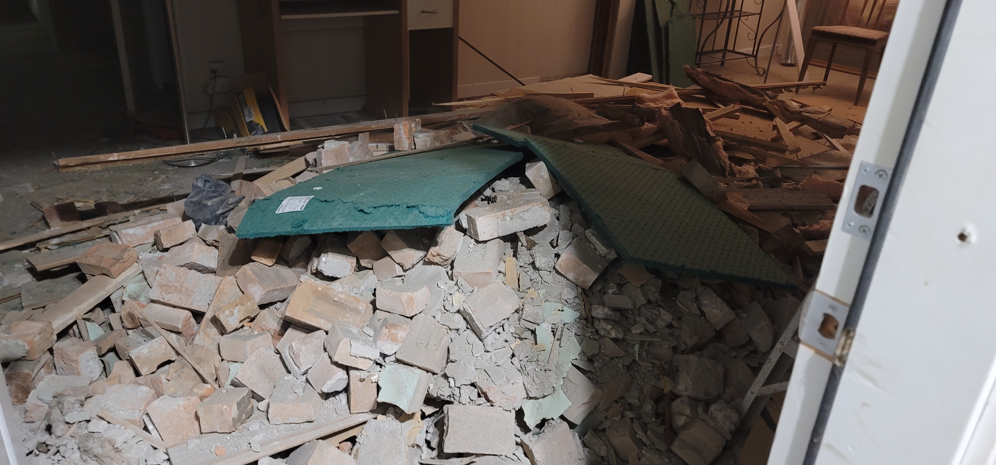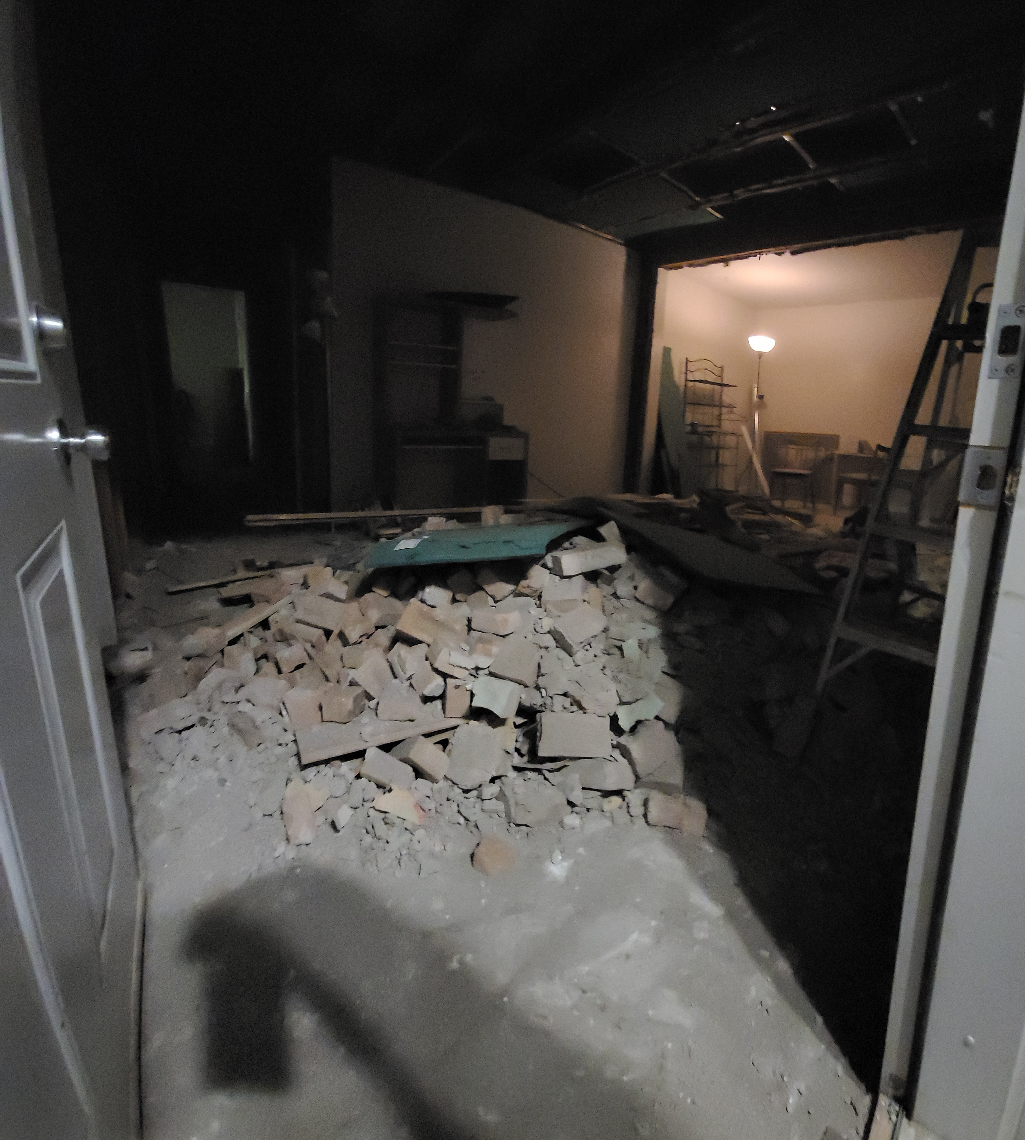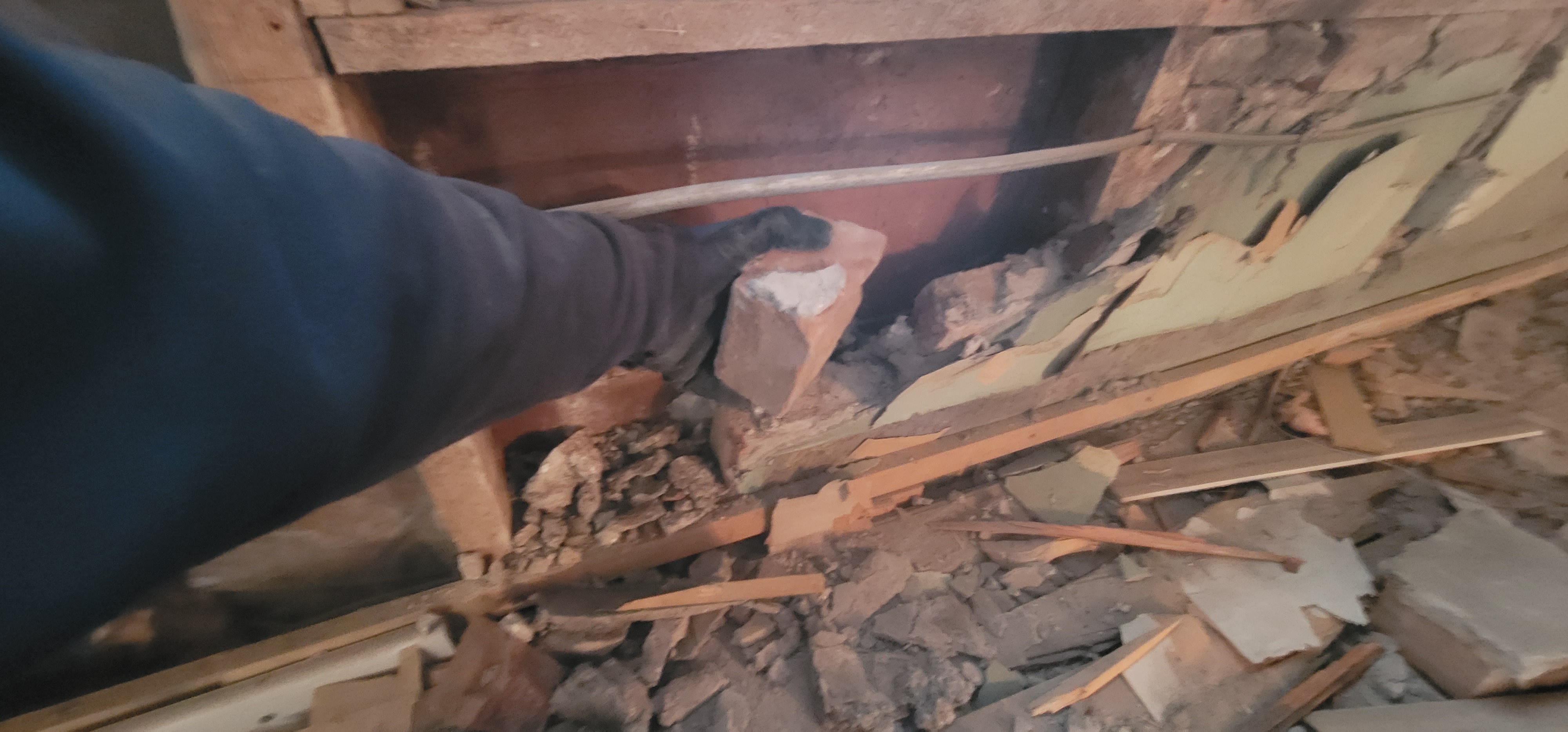 11/29/2025 4:09 PM 1875328 1403 3 Ave N Lethbridge AB main 20251129_160931 removing bricks from living room south wall.jpg