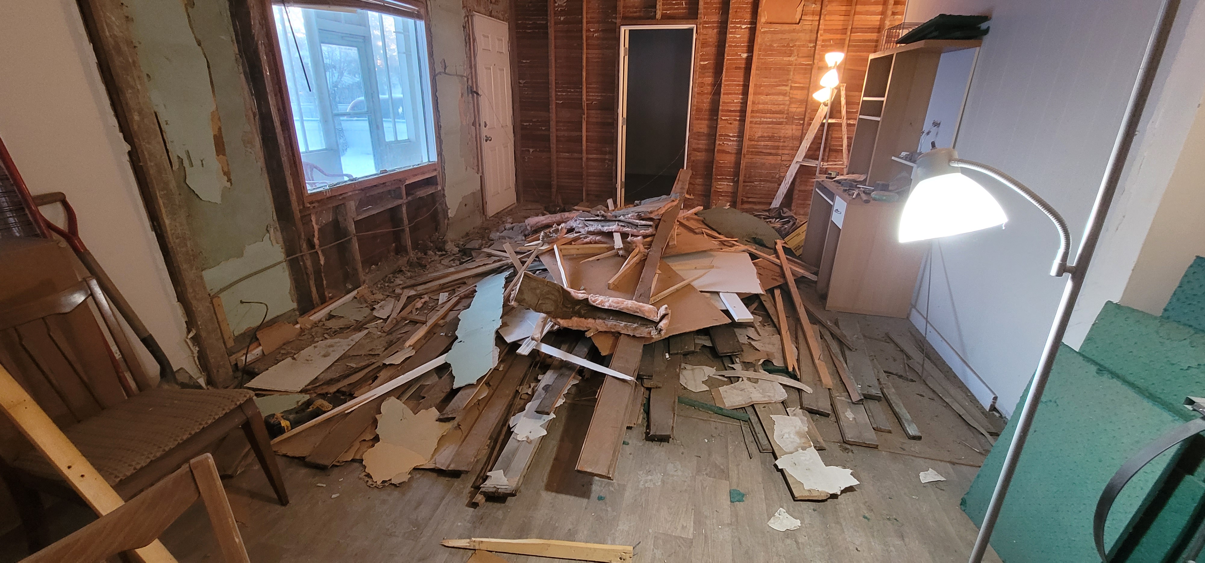 11/29/2025 4:44 PM 1823355 1403 3 Ave N Lethbridge AB main 20251129_164442 living room south wall partially dismantled.jpg