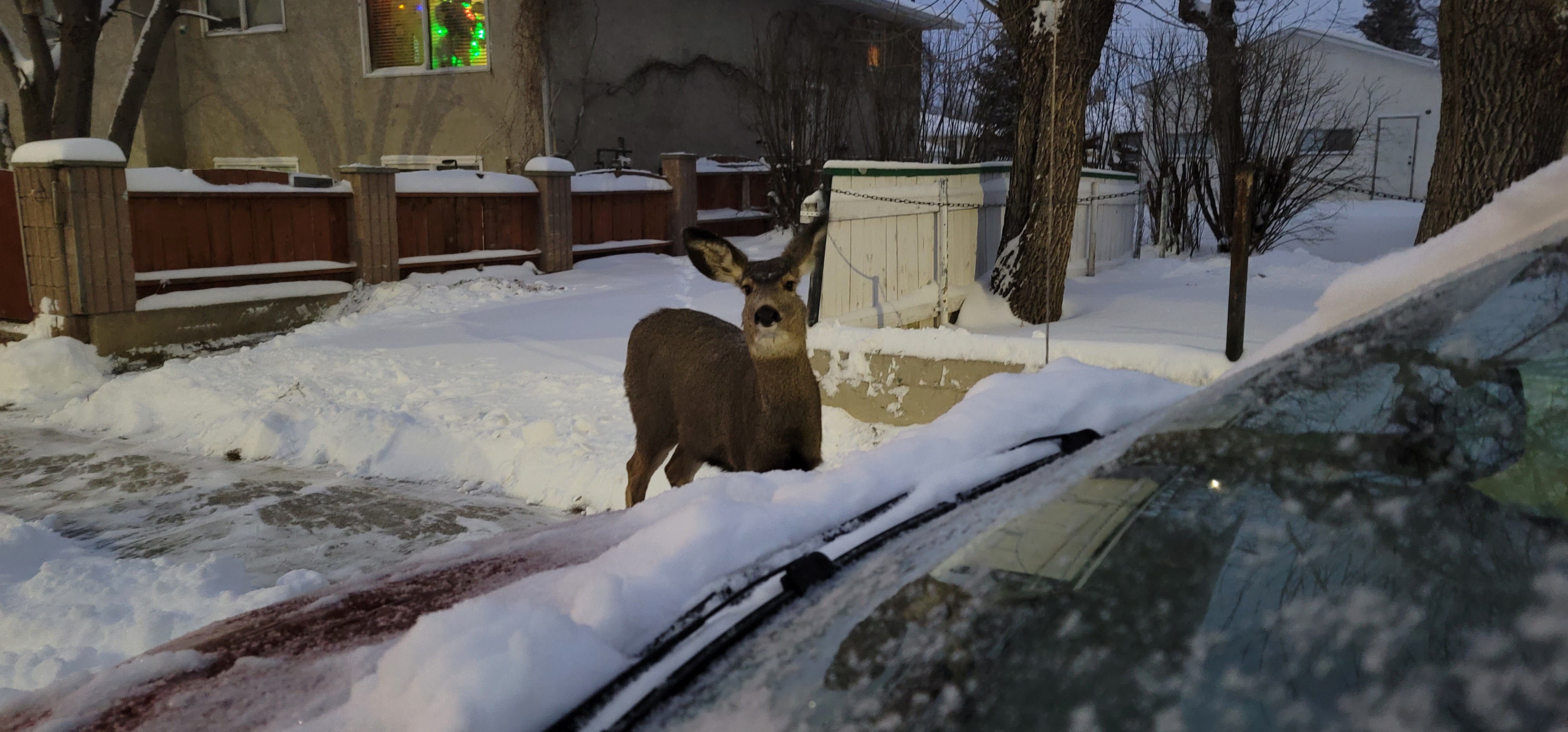 11/28/2025 5:10 PM 2141791 1403 3 Ave N Lethbridge AB prop 20251128_171033 deer in front of Allan's van.jpg