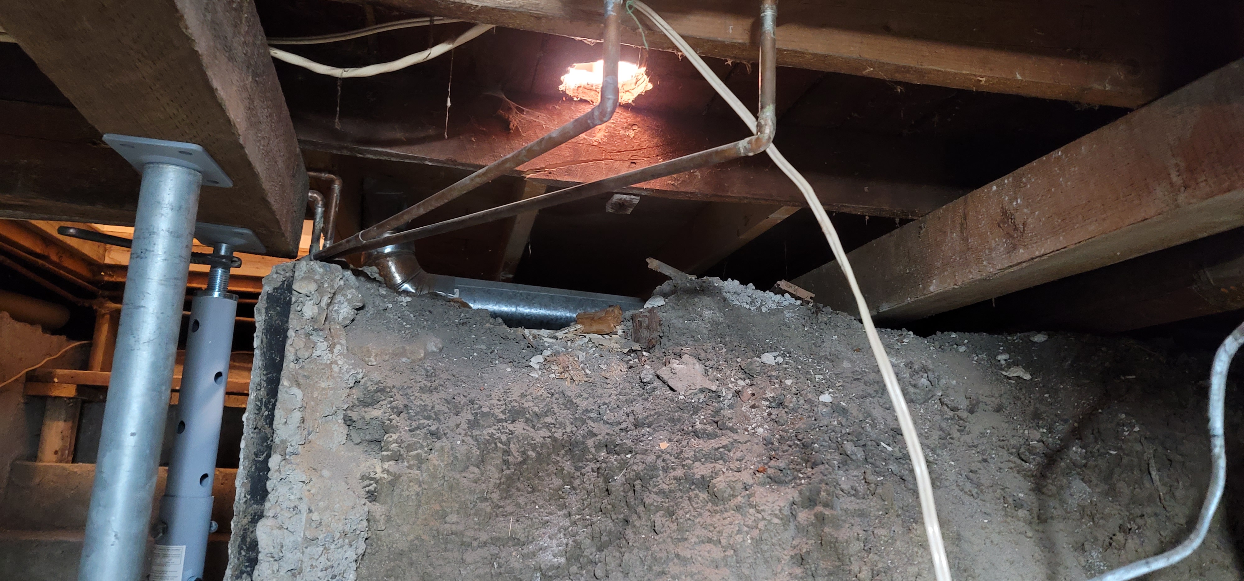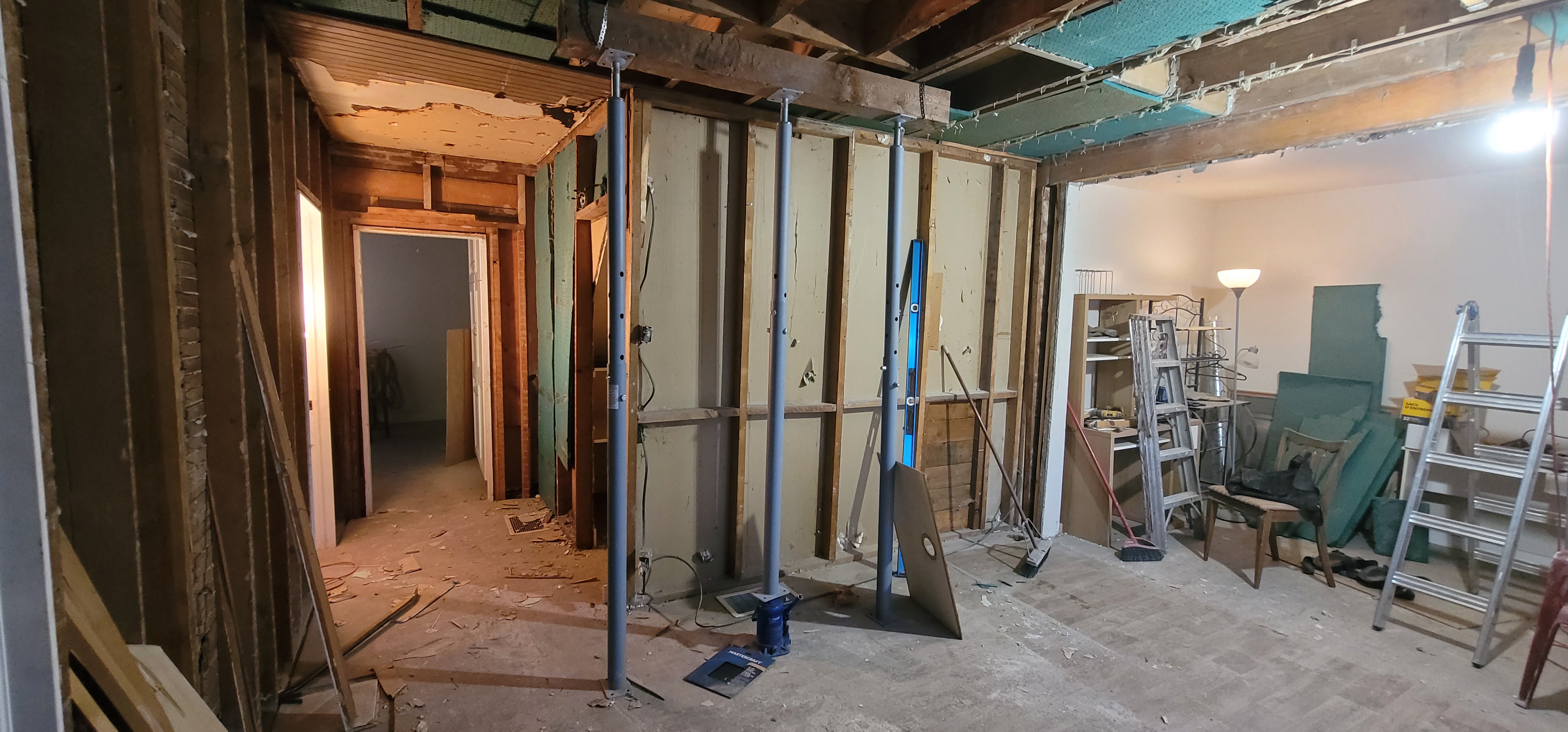 12/3/2025 4:35 PM 1816947 1403 3 Ave N Lethbridge AB main 20251203_163545 teleposts in living room to raise 2nd floor 3 inches.jpg