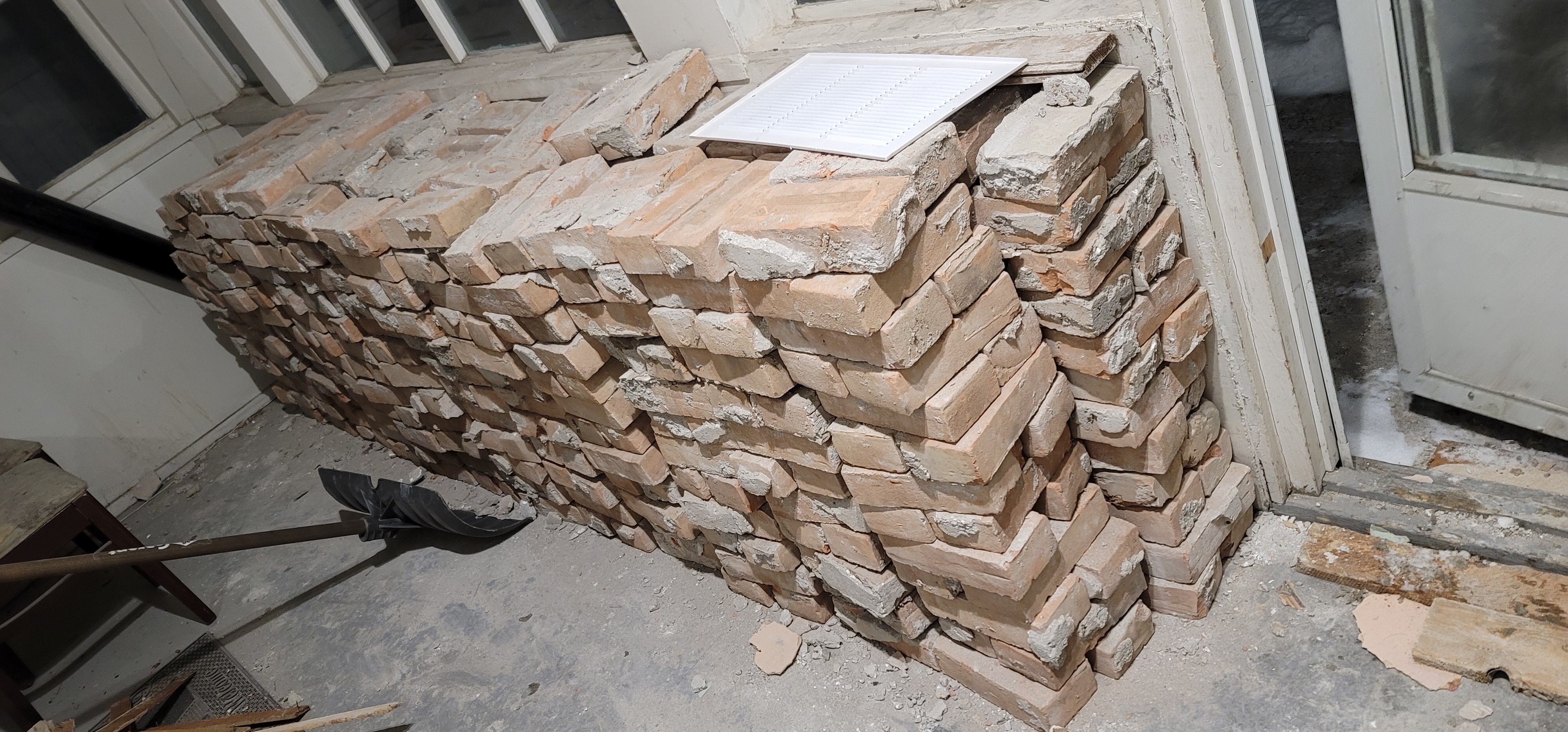 12/13/2025 5:59 PM 2671062 1403 3 Ave N Lethbridge AB main 20251213_175938 pile of bricks removed from exterior walls.jpg