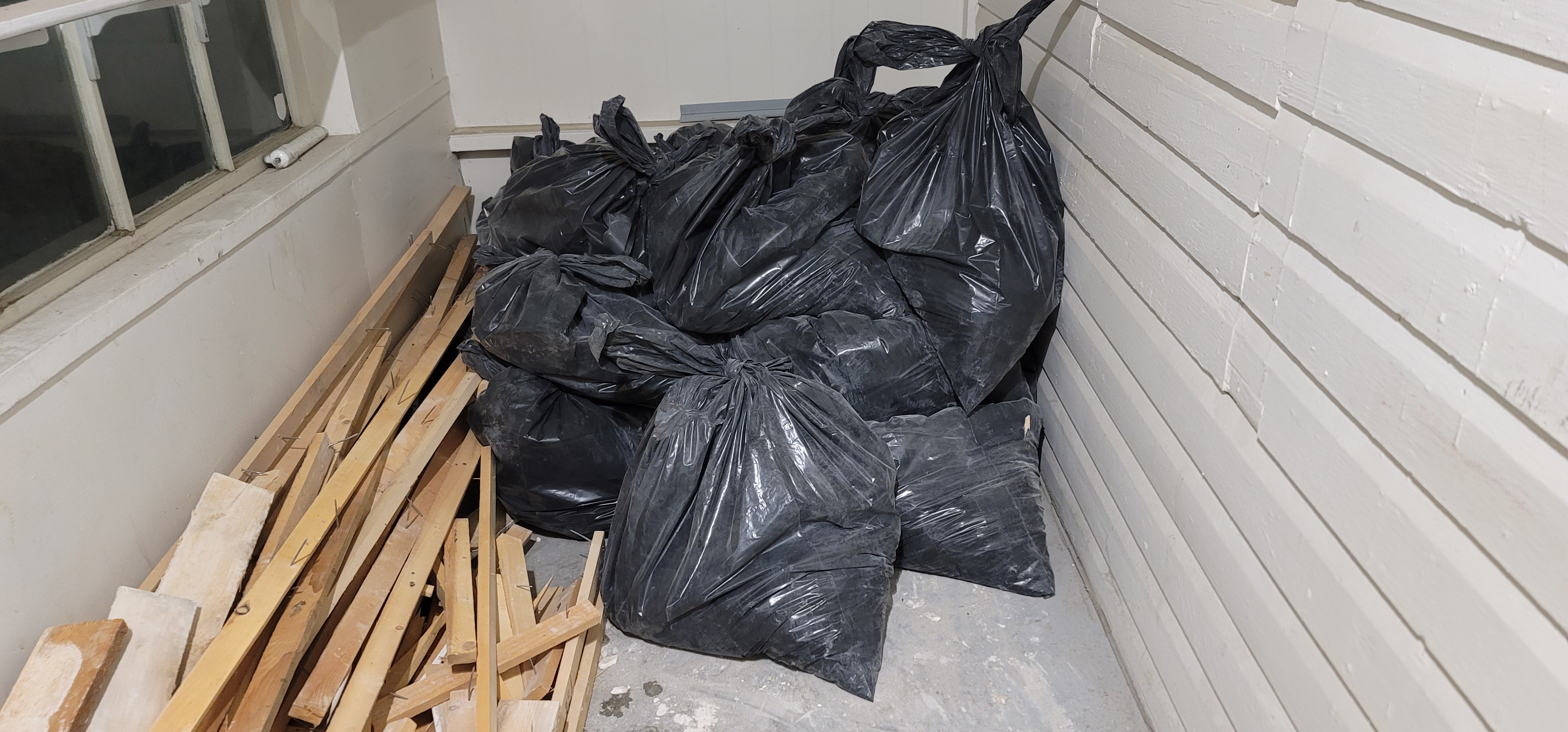 12/13/2025 5:59 PM 2231646 1403 3 Ave N Lethbridge AB main 20251213_175944 bags of plaster removed from walls.jpg