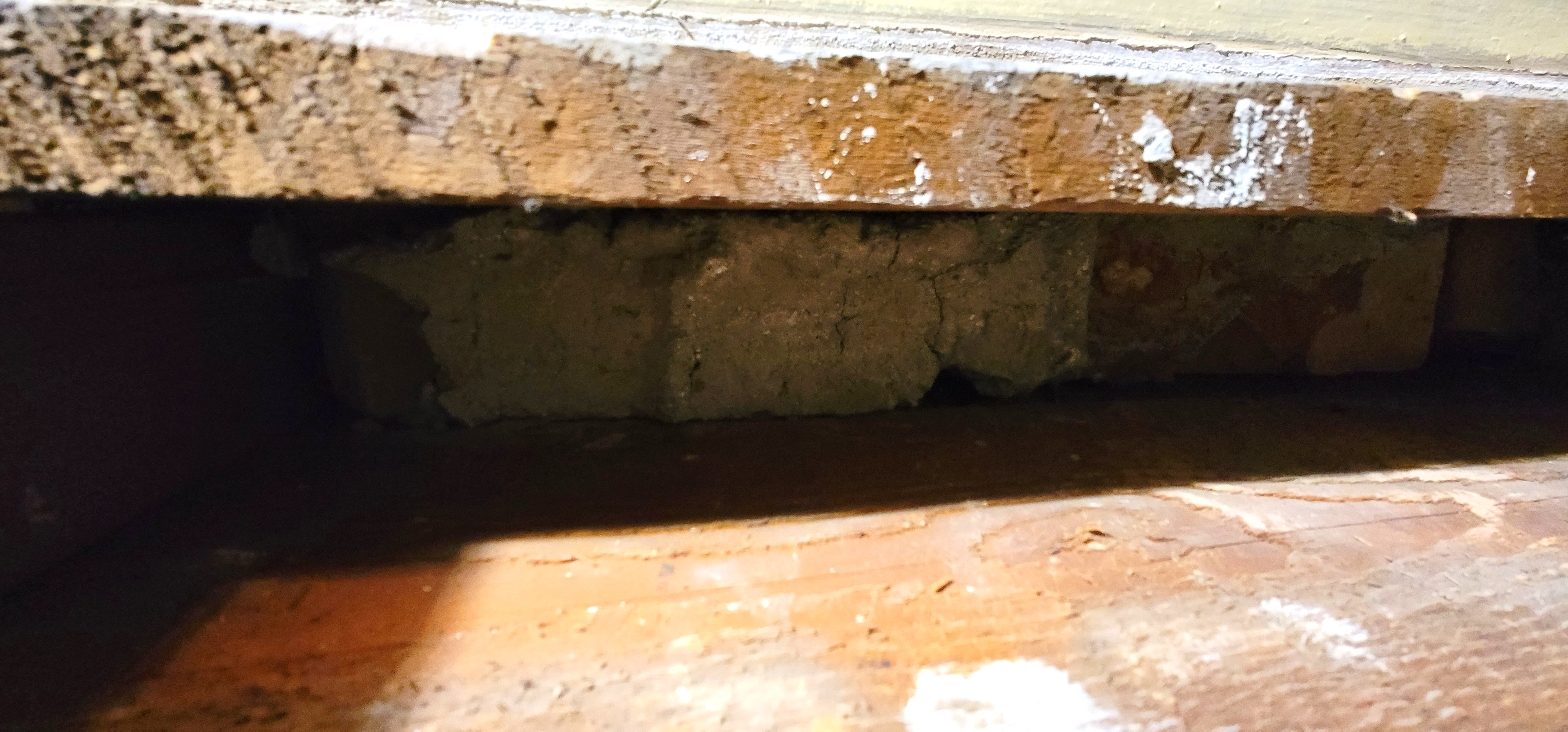 12/13/2025 5:53 PM 2155981 1403 3 Ave N Lethbridge AB prop 20251213_175340 beam under broken rim joist.jpg