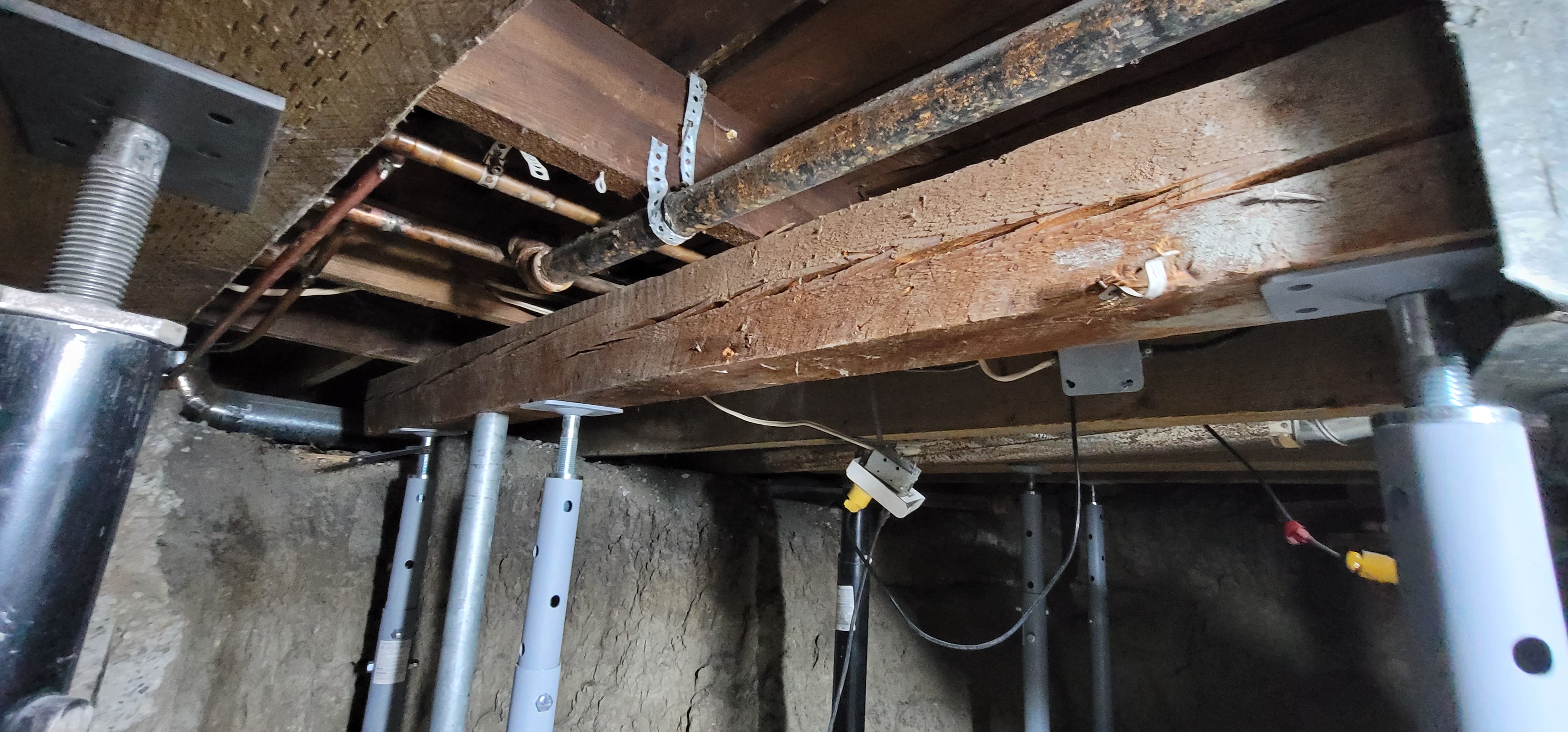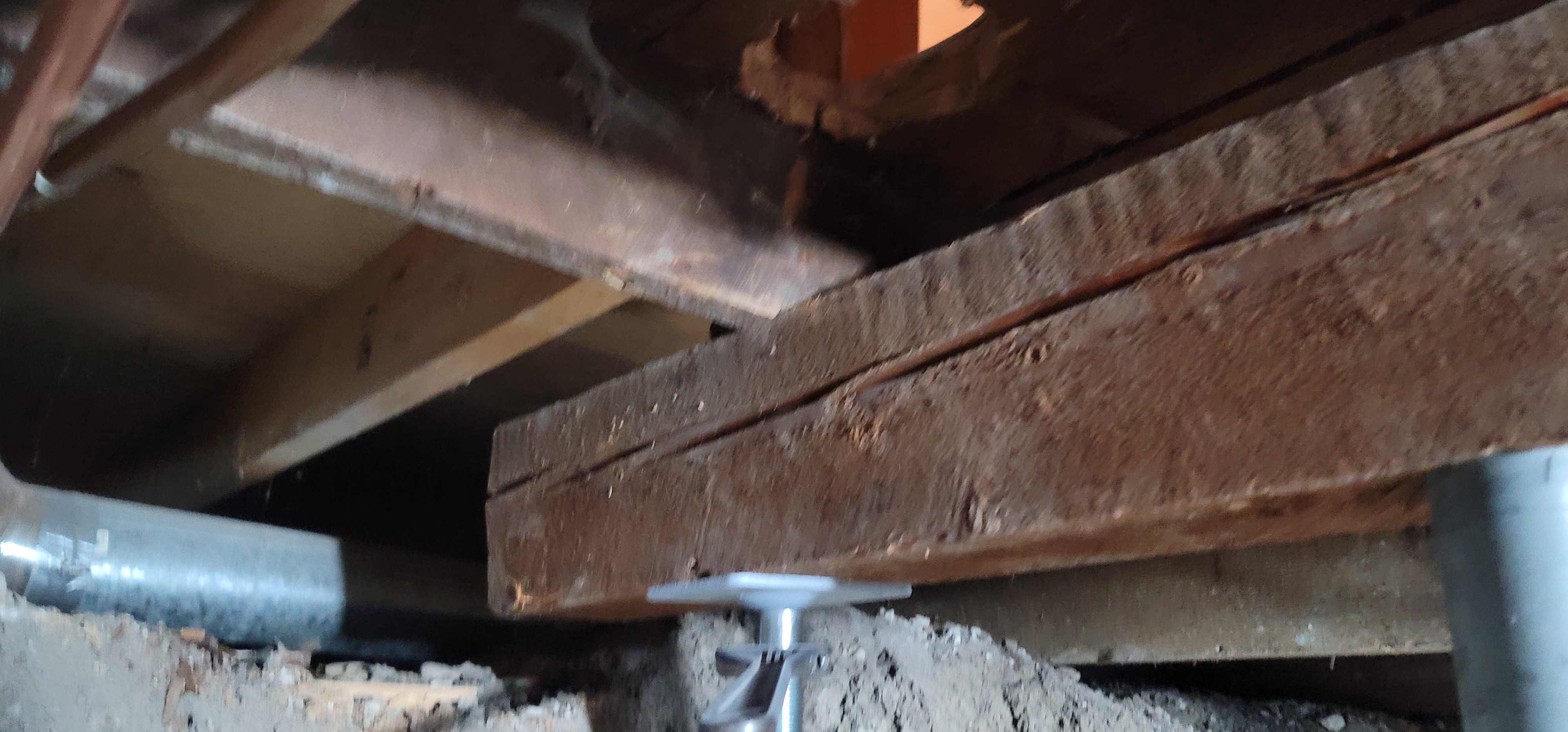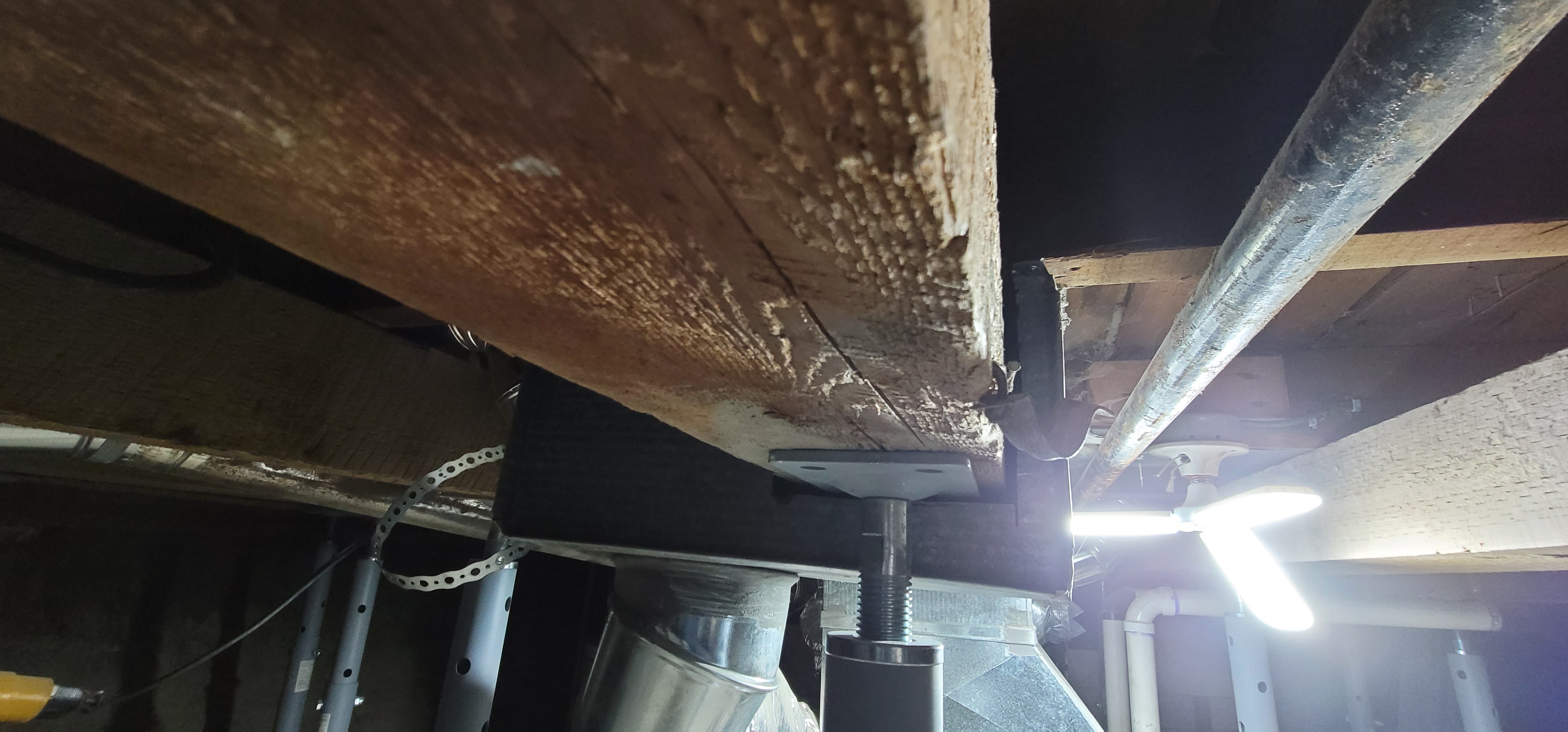 12/13/2025 5:54 PM 2202739 1403 3 Ave N Lethbridge AB prop 20251213_175404 beam under broken rim joist.jpg