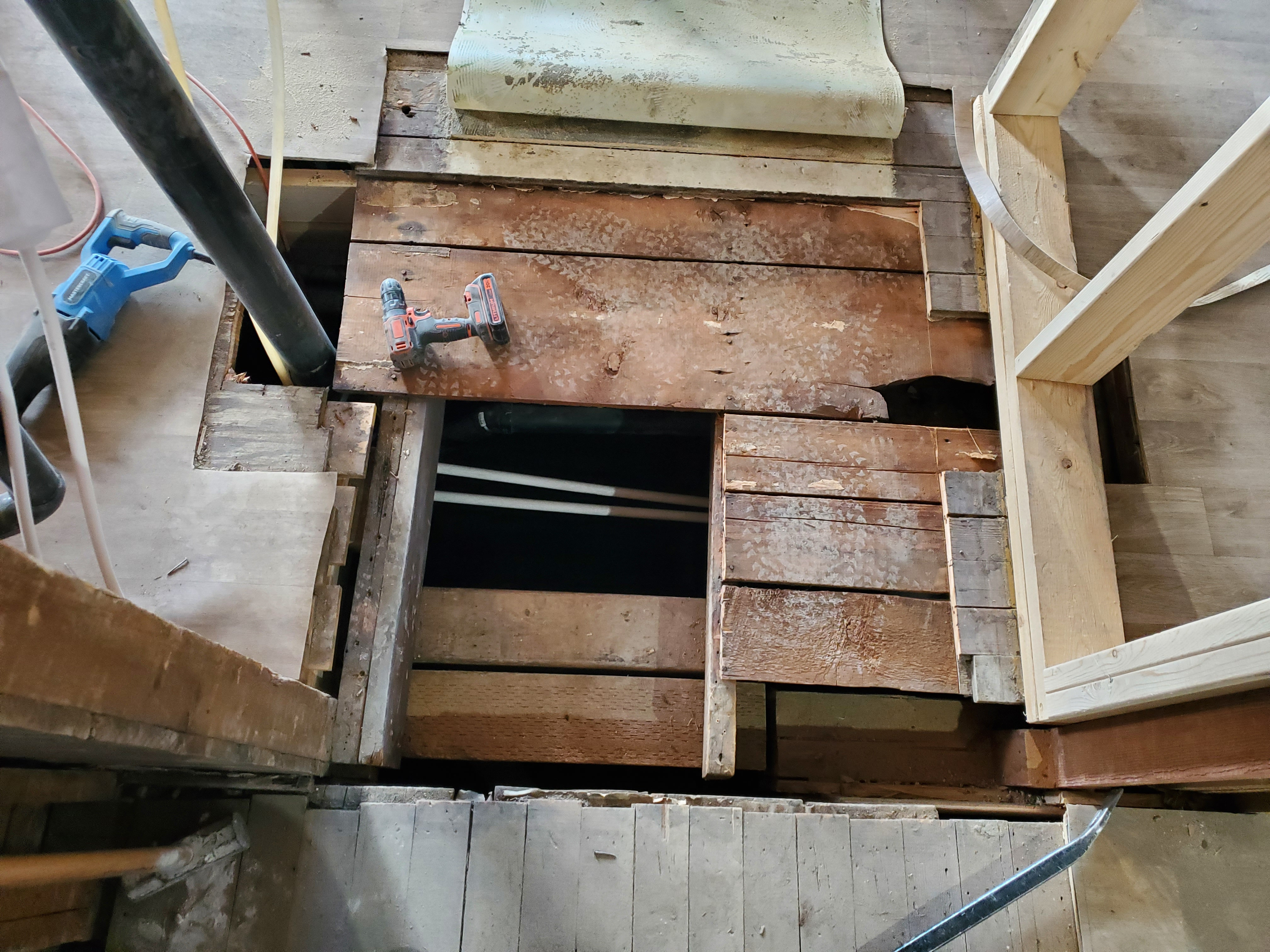 2/18/2026 8:52 AM 2218091 1403 3 Ave N Lethbridge AB main 20260216_102916 hole in floor under stairway.jpg