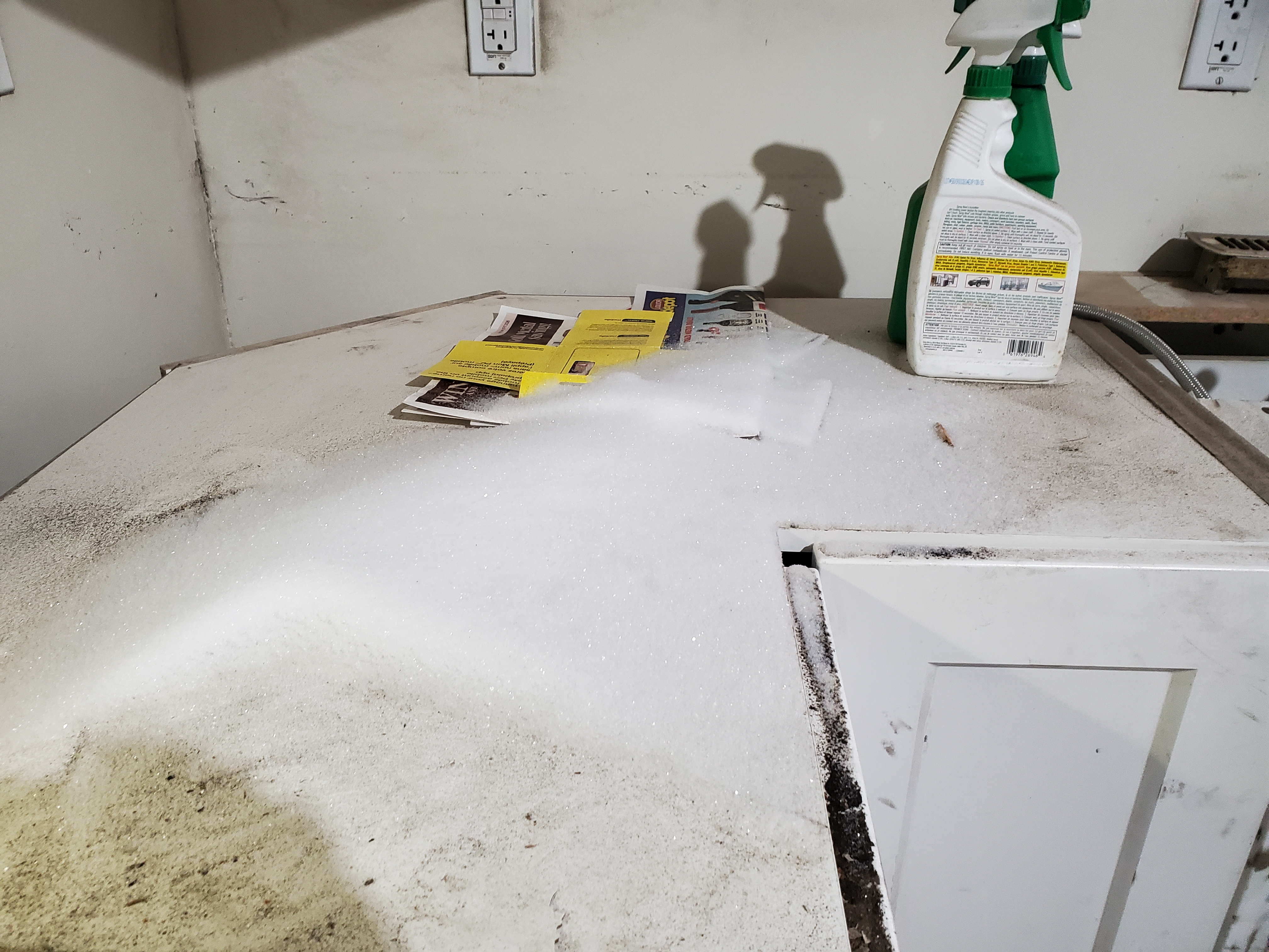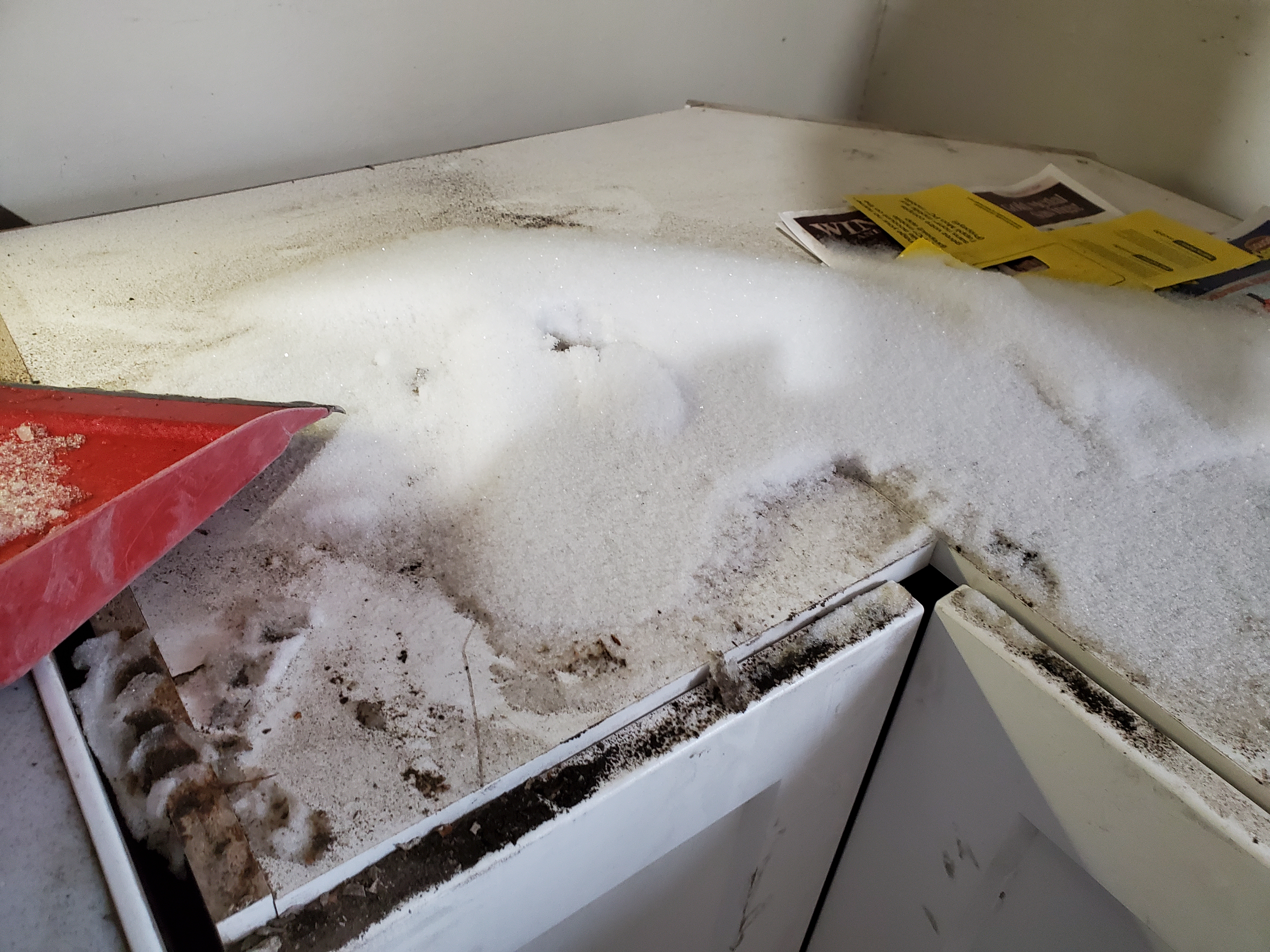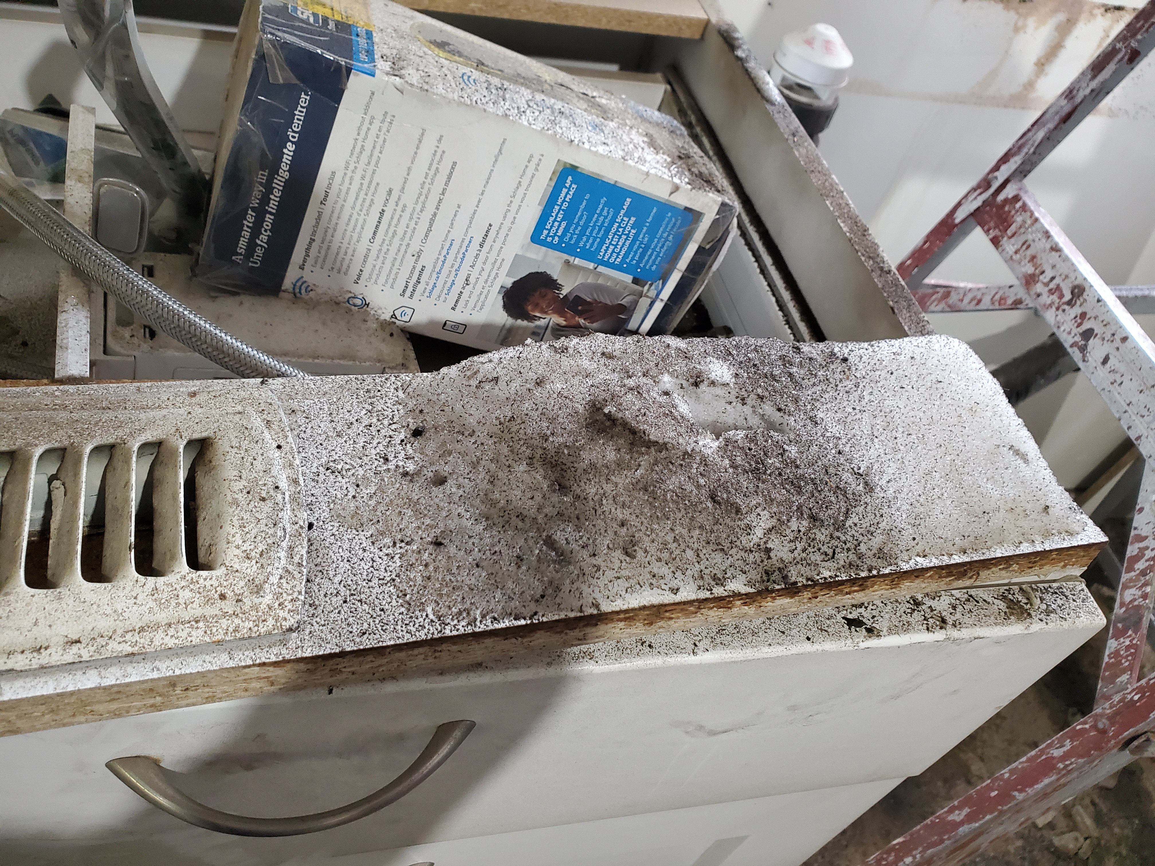 2/17/2026 11:11 AM 7024944 1403 3 Ave N Lethbridge AB main 20260217_111153 snow leaking into kitchen base cabs.jpg