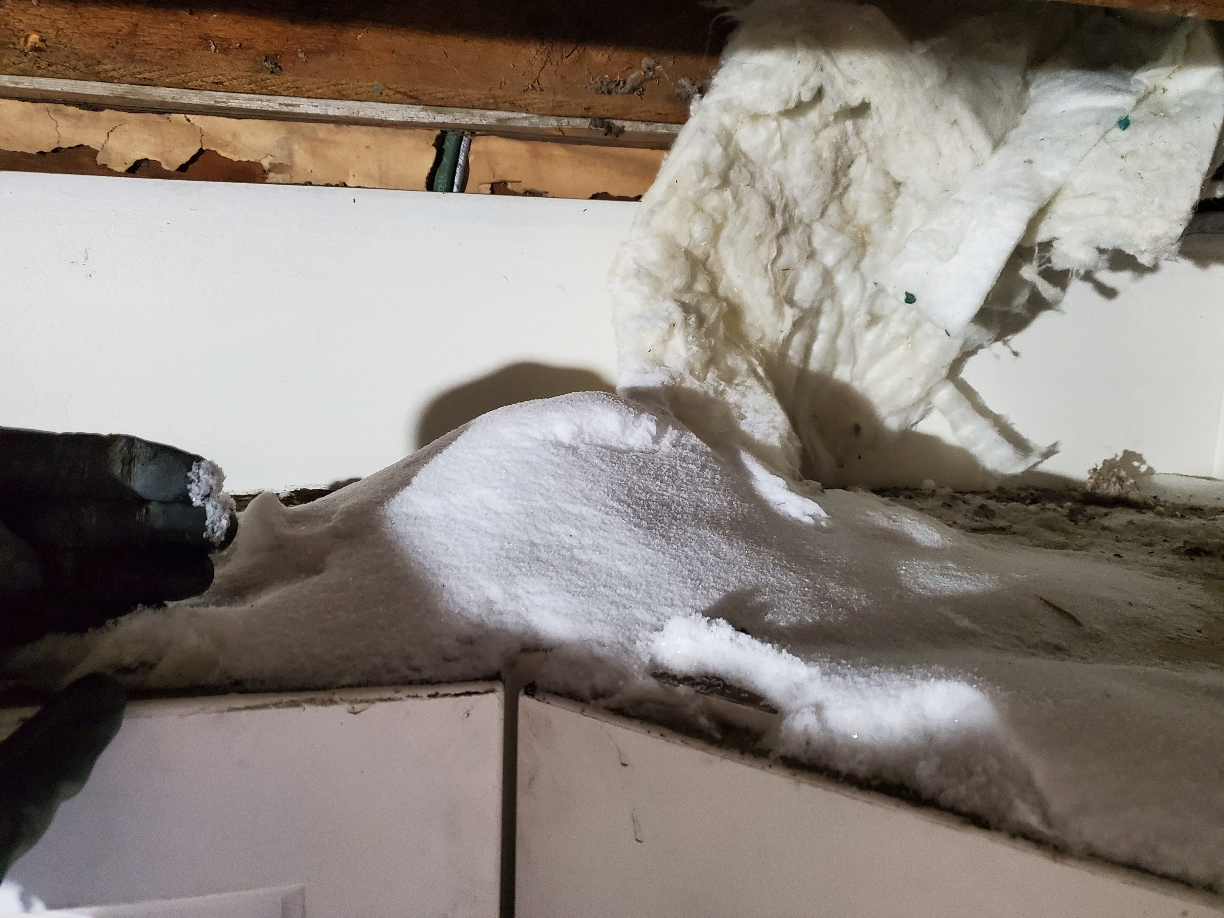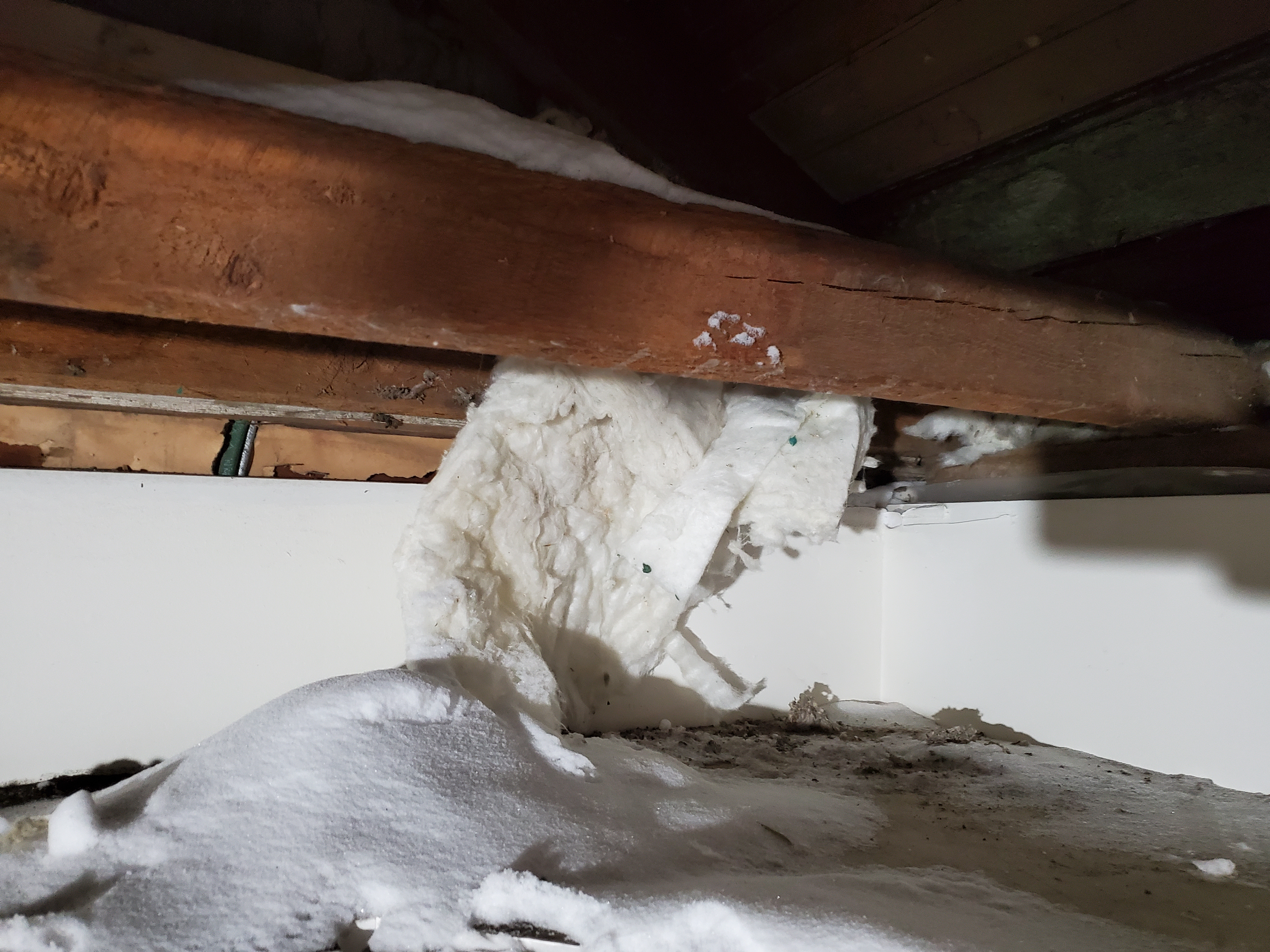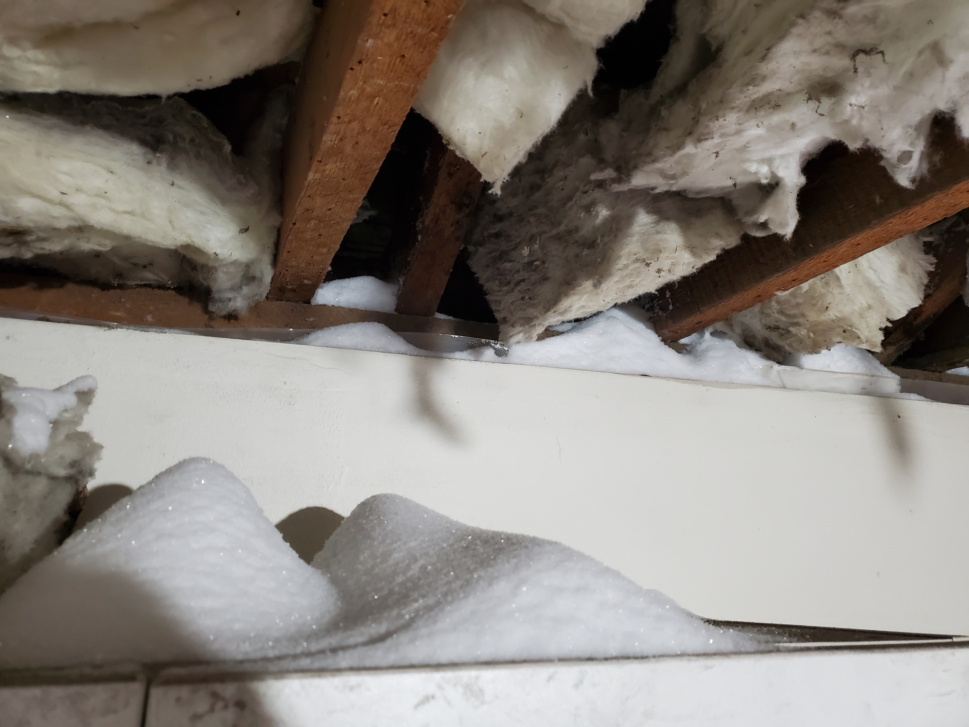 2/17/2026 3:06 PM 8287667 1403 3 Ave N Lethbridge AB main 20260217_150608 snow coming through roof onto insulation.jpg