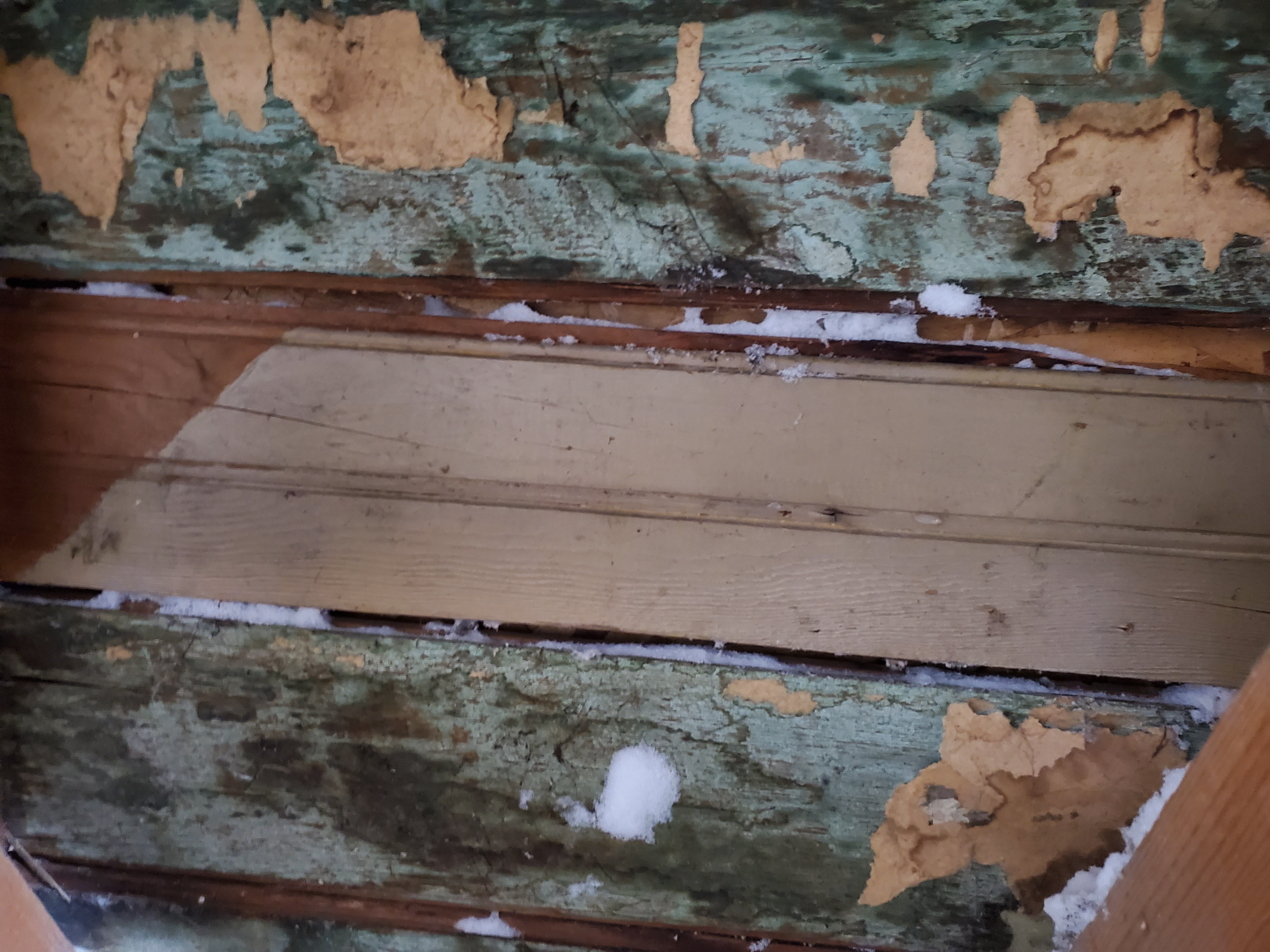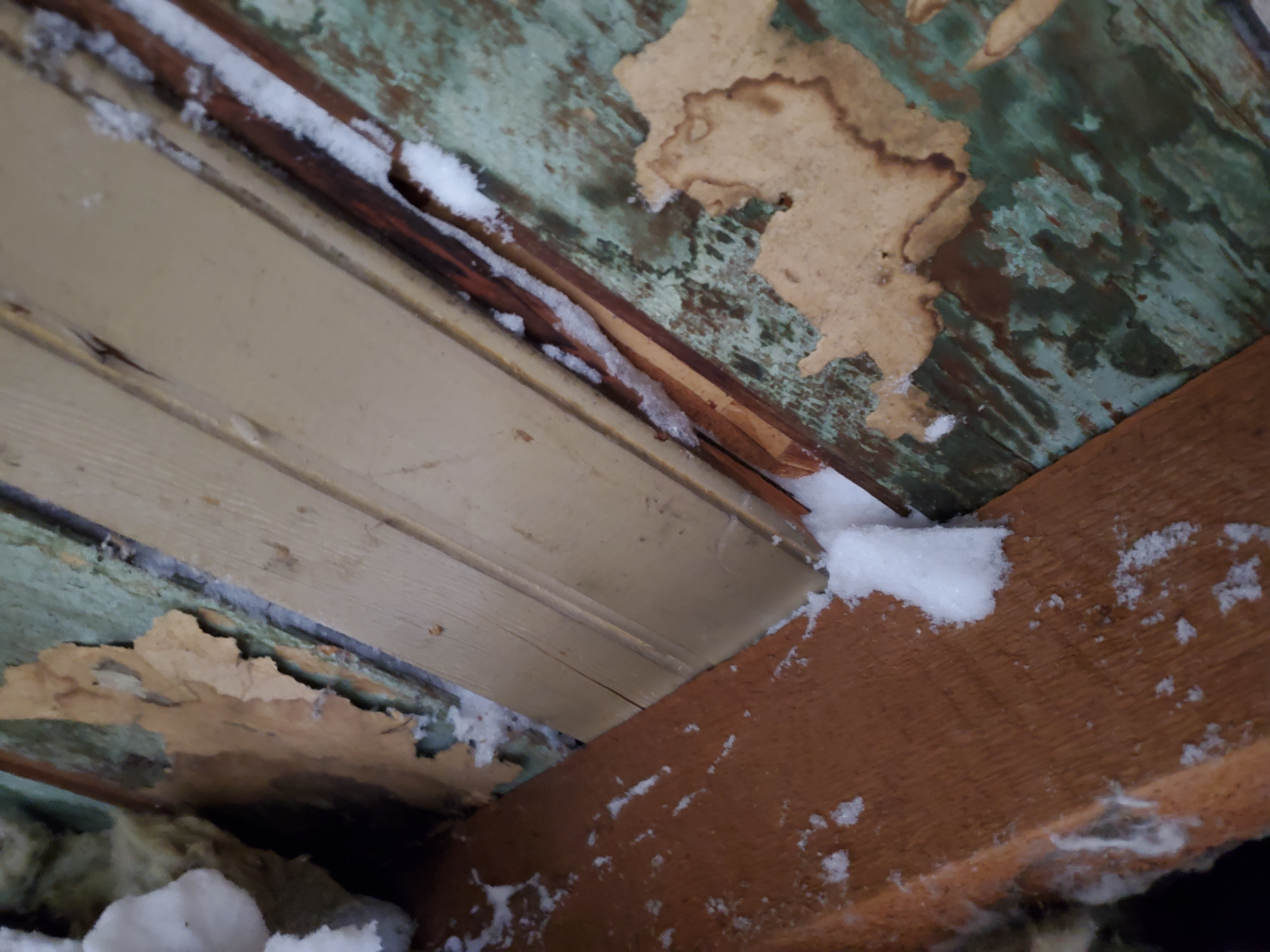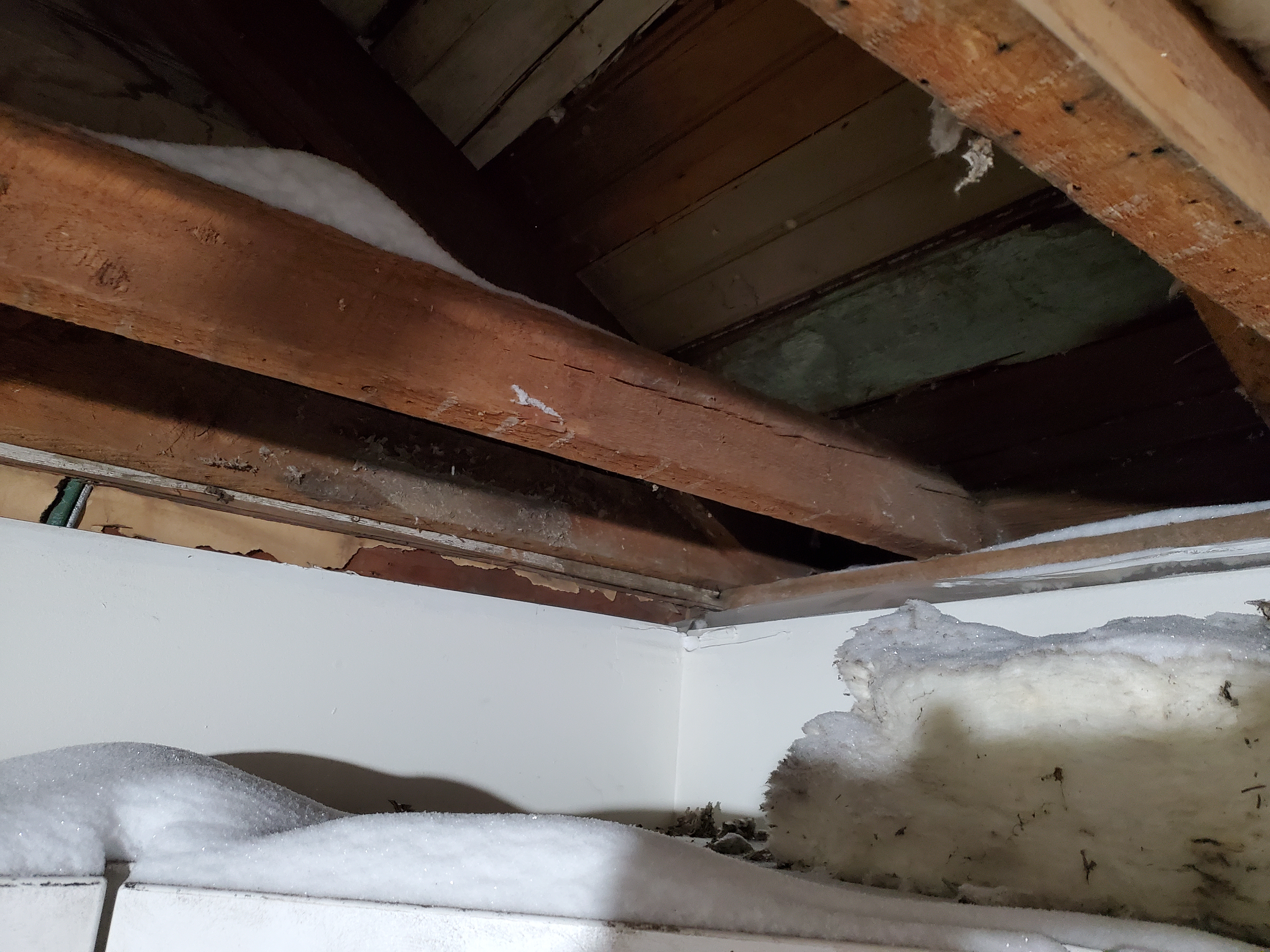 2/17/2026 3:02 PM 7919025 1403 3 Ave N Lethbridge AB main 20260217_150209 snow coming through roof boards.jpg