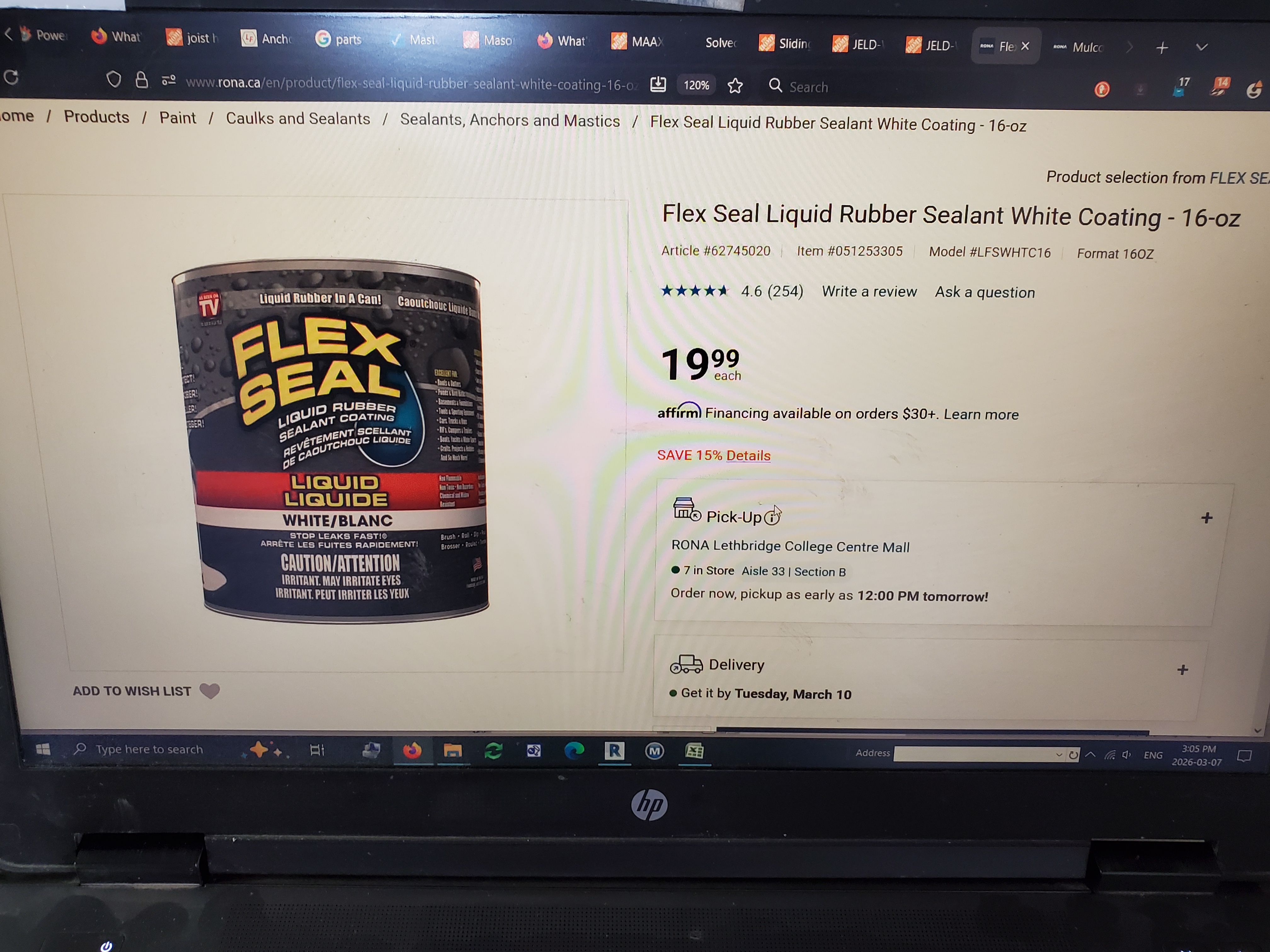 3/7/2026 4:05 PM 5786989 1403 3 Ave N Lethbridge AB main 20260307_150520 Flex Seal rubber sealant at Rona.ca.jpg
