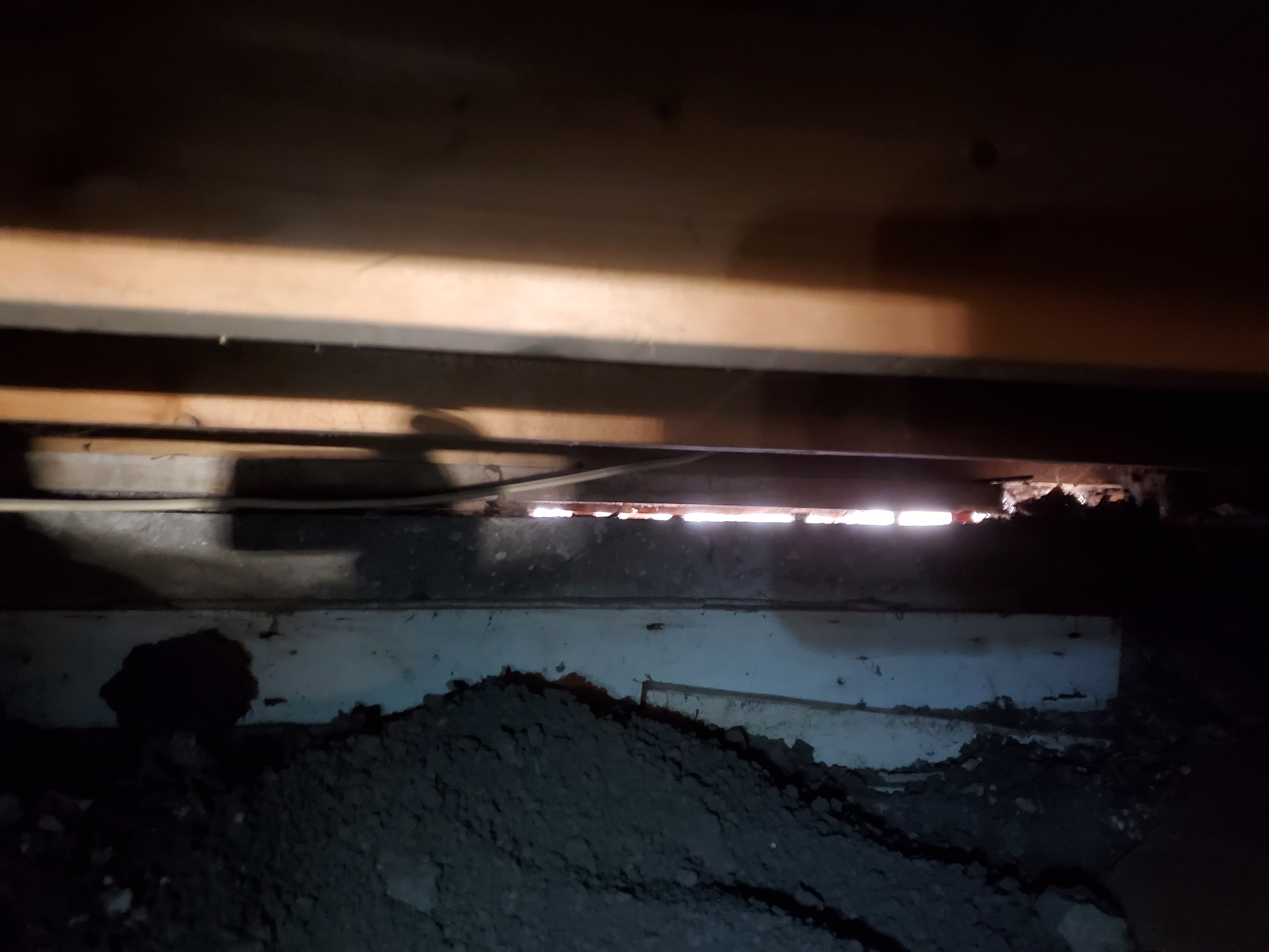 3/6/2026 5:00 PM 7331530 1403 3 Ave N Lethbridge AB prop 20260306_160034 jacking living room bathroom add-on seeing daylight through crack.jpg