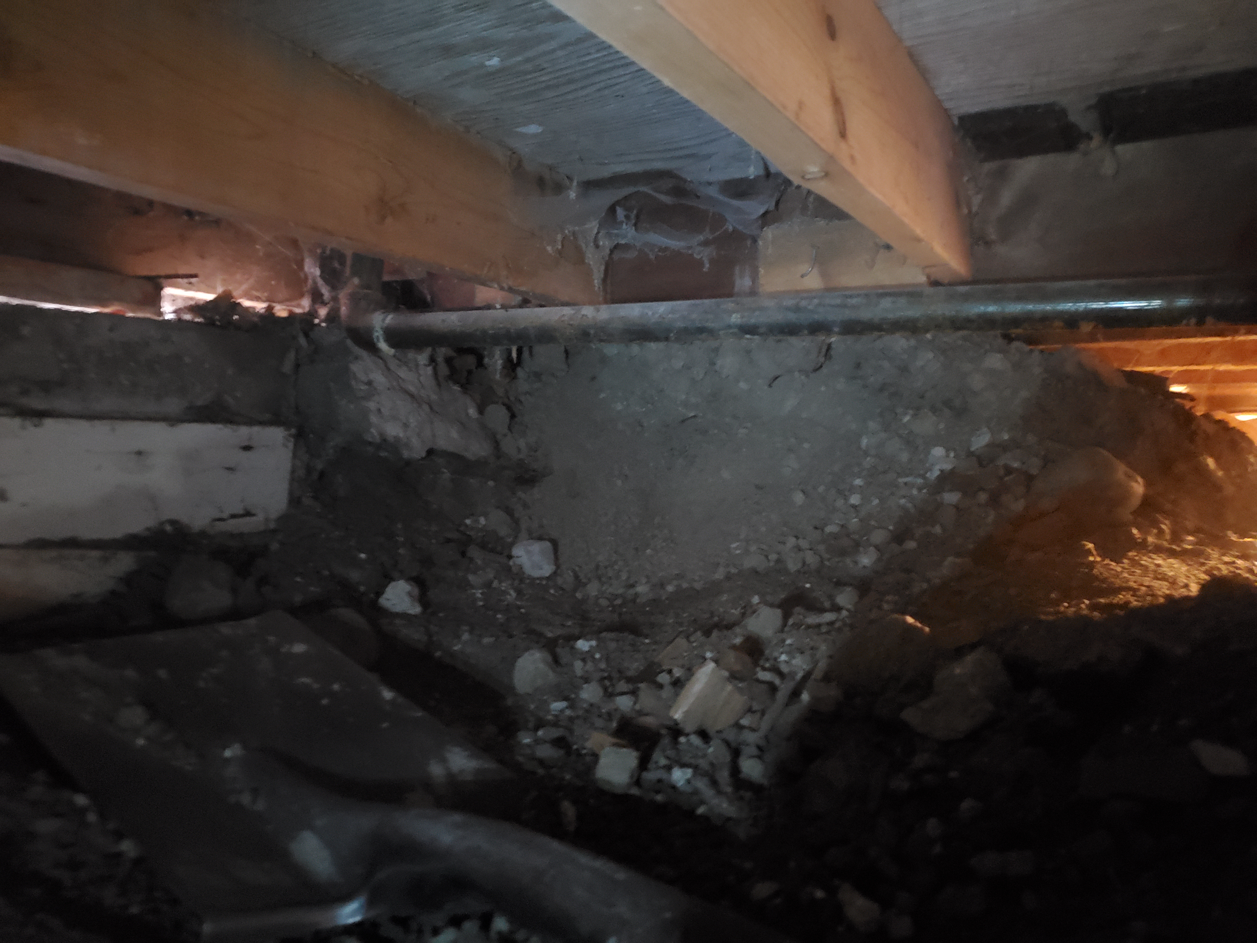 3/7/2026 3:33 PM 7349236 1403 3 Ave N Lethbridge AB main 20260307_143302 cleaning up bathroom add-on rotten sheathing.jpg